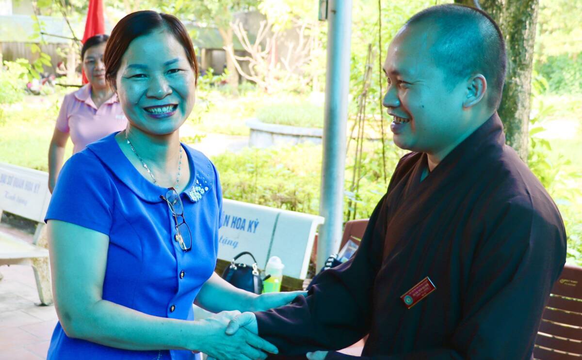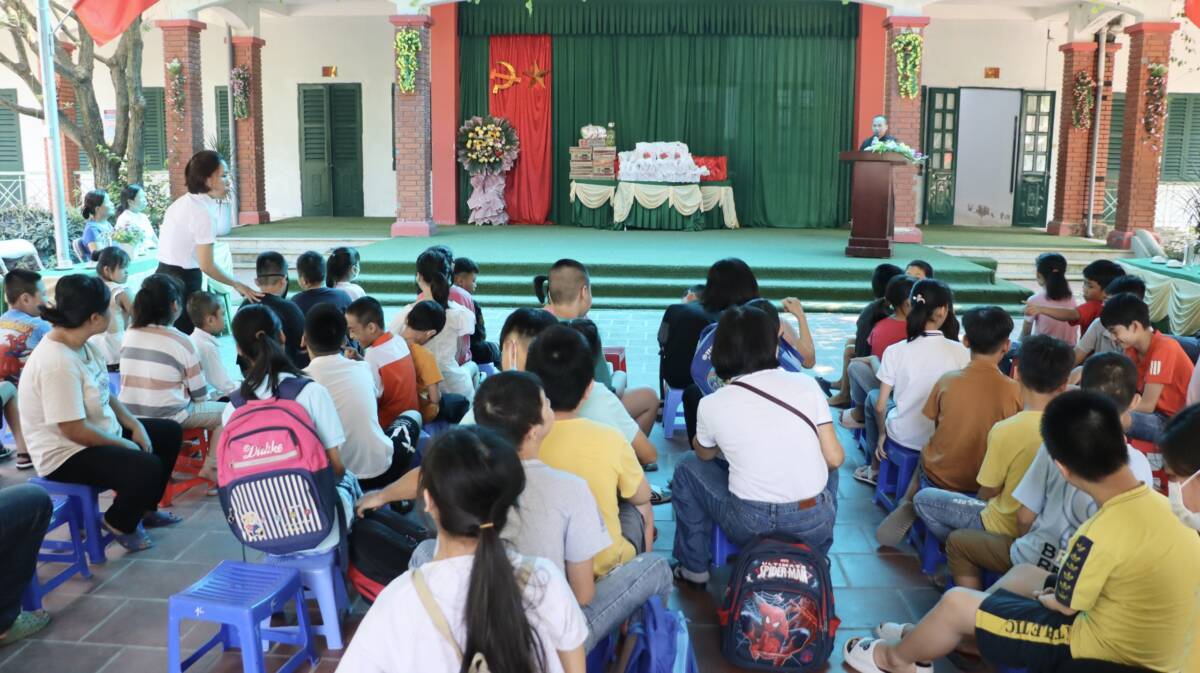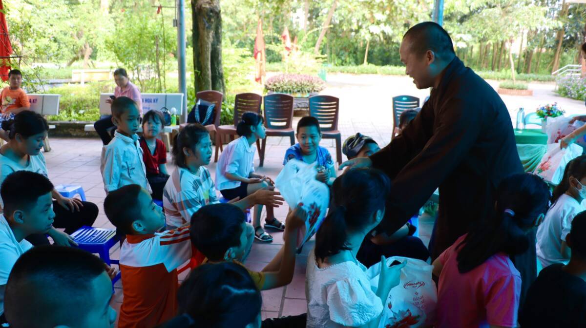 Tại đây, Đại đức đã ân cần thăm hỏi sức khỏe, động viên các cô giáo và các cháu học sinh trong những ngày đầu của năm học mới, gửi lời chúc tới cô và trò nhà trường có một Tết Trung thu vui vẻ, đầm ấm, chúc các cháu chăm ngoan, nghe lời ông bà, bố mẹ và các cô giáo. Đại diện nhà trường đã cảm ơn chư tôn đức Hội đồng Điều hành, Văn phòng Học viện đã luôn quan tâm tới các cháu tại đây trong mỗi dịp lễ, Tết.