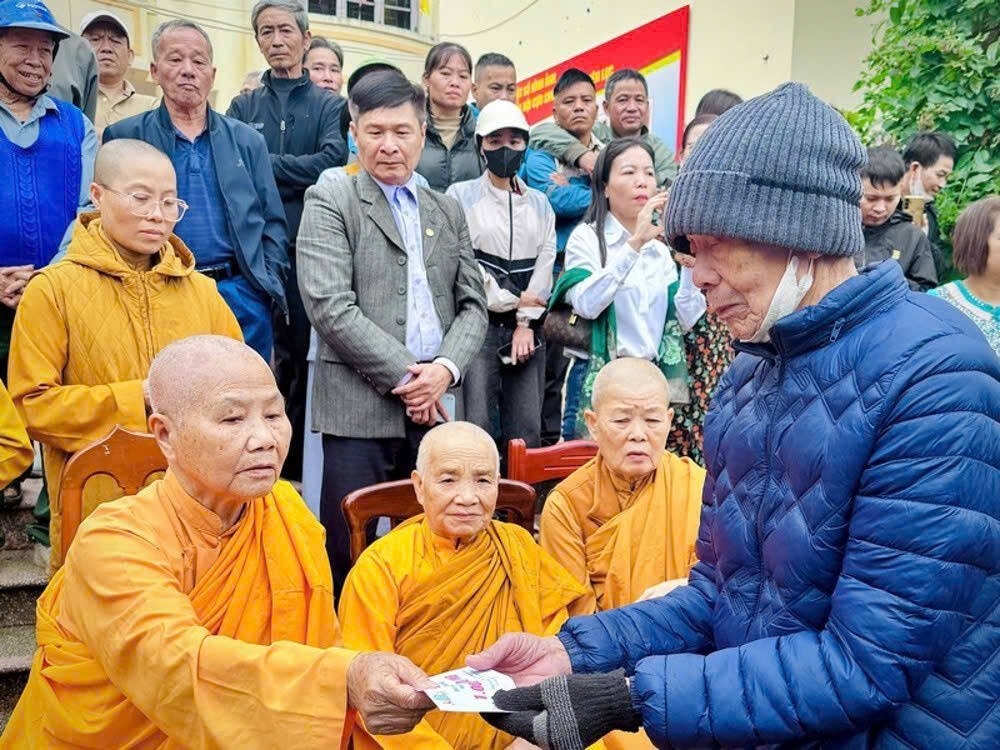 PGĐS- Ngày 03/11/2025, tại tỉnh Bắc Ninh, Đoàn Từ thiện Ni giới Hệ phái Khất sĩ do Ni trưởng Chiêu Liên, Giáo phẩm Thường trực Ni giới Hệ phái Khất sĩ, năm nay đã 98 tuổi làm Trưởng đoàn; Ni trưởng Tuấn Liên, Phó đoàn; cùng chư Tôn đức Ni cùng thiện tín Phật tử các miền tịnh xá đã trao 1000 phần quà trị giá 1,2 tỷ đồng đến đồng bào 3 xã Đồng Kỳ, Bố Hạ và Tiên Lục.