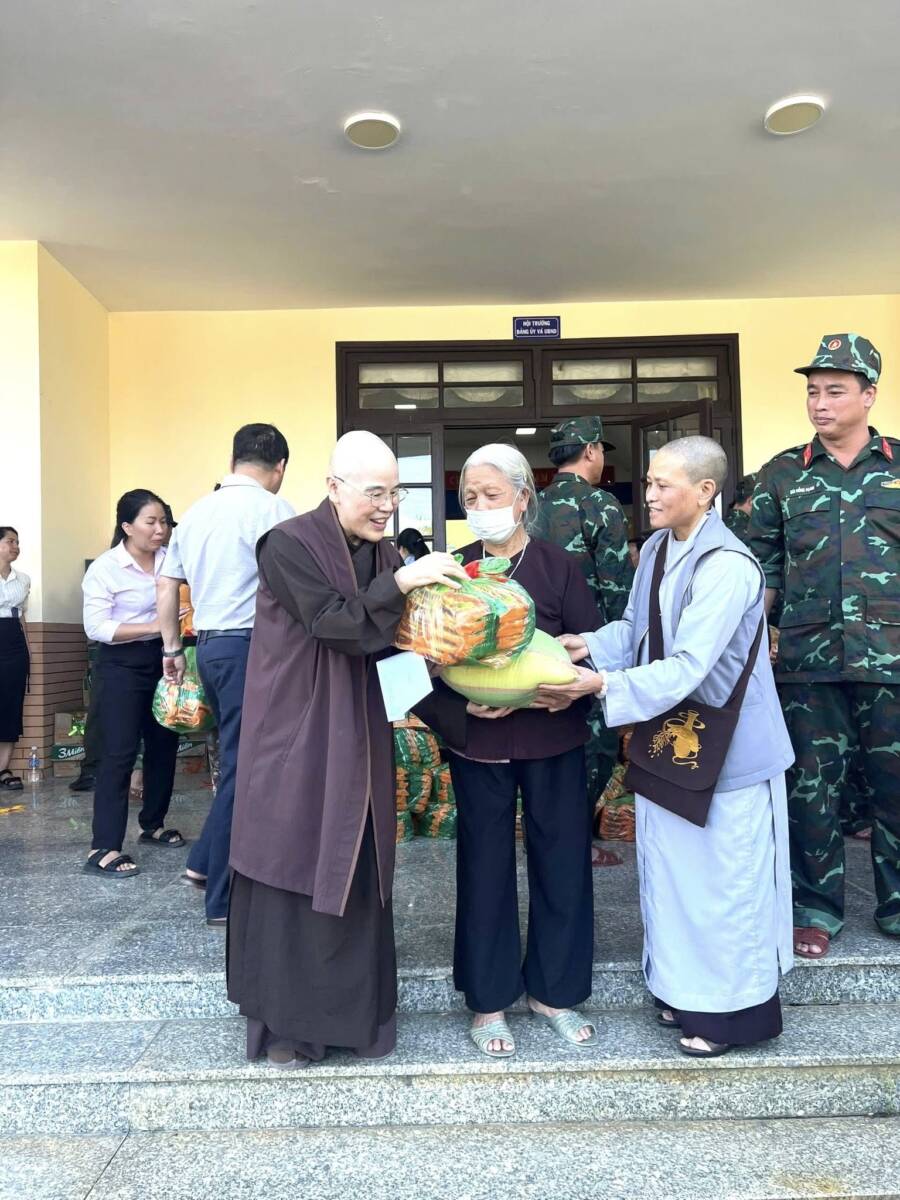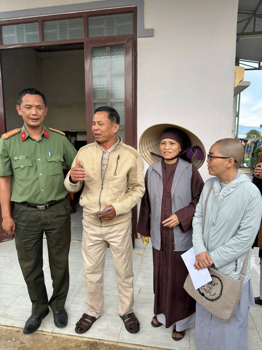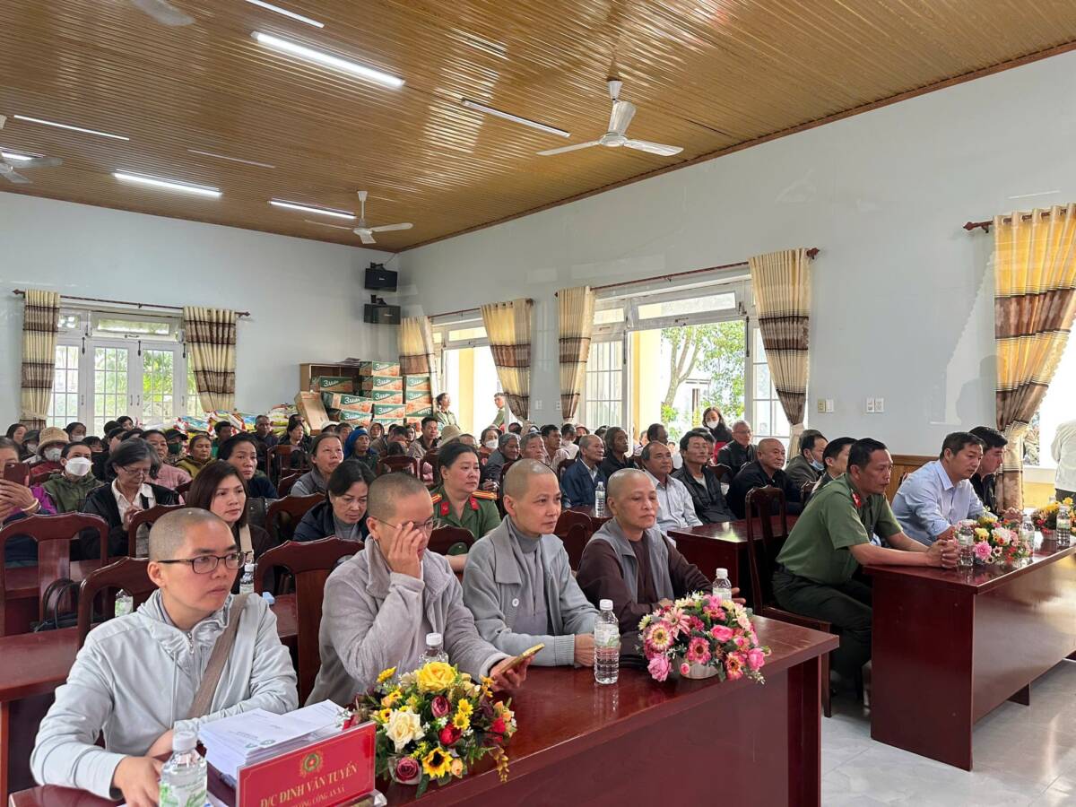 Ngày 26/11/2025, tại xã Cát Tiên, đoàn cứu trợ có sự chứng minh và tham dự của TT. Thích Thanh Nhật – Phó Ban kiêm Chánh Thư ký Ban Trị sự Phật giáo tỉnh, TT. Thích Chiếu Ý – Phó Ban Trị sự kiêm Phó Thường trực Ban TTXH Phật giáo tỉnh; Ni sư Thích Nữ Hạnh Khai, UVTT BTS PG tỉnh, Phó Thường trực Ban TTXH Phật giáo tỉnh, Phó Thư ký PBNG tỉnh, chư Tôn đức cùng quý cư sĩ thành viên ban TTXH PG; Thượng tá Lê Công Duy – Phó trưởng phòng PA02 cùng các cán bộ của phòng.