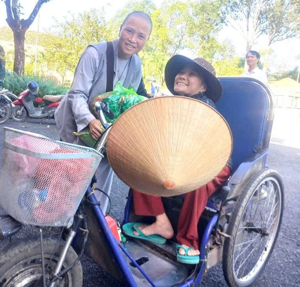 Chuyến đi do Ni sư Thích Nữ Hạnh Khai cùng Thượng tá Lê Công Duy trực tiếp dẫn đoàn, cùng các thành viên Ban TTXH Phật giáo tỉnh và phòng PA 02, vượt qua nhiều đoạn đường còn lầy lội sau lũ đoàn đã đến xã Ka Đô.