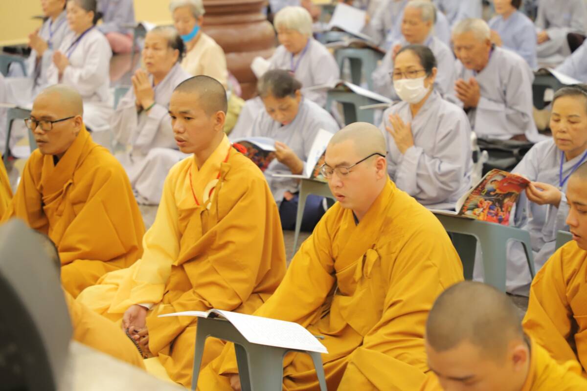 Sau thời Pháp thoại là thời khóa niệm Phật. Thầy Huệ Minh đã giảng về ý nghĩa của việc trì niệm danh hiệu Phật “Niệm Phật để suy nghĩ đến tướng tốt, đức hạnh của chư Phật mà noi theo tu tập, tự nhủ luôn sửa đổi để tâm tính ngày càng tốt hơn. Phật làm tâm hồn lắng dịu, bỏ dần tính ác, phát triển hạnh lành, quên đi đau buồn sợ hãi, đời sống được an vui, đem lại thiện nghiệp cho mình và mọi người.”
