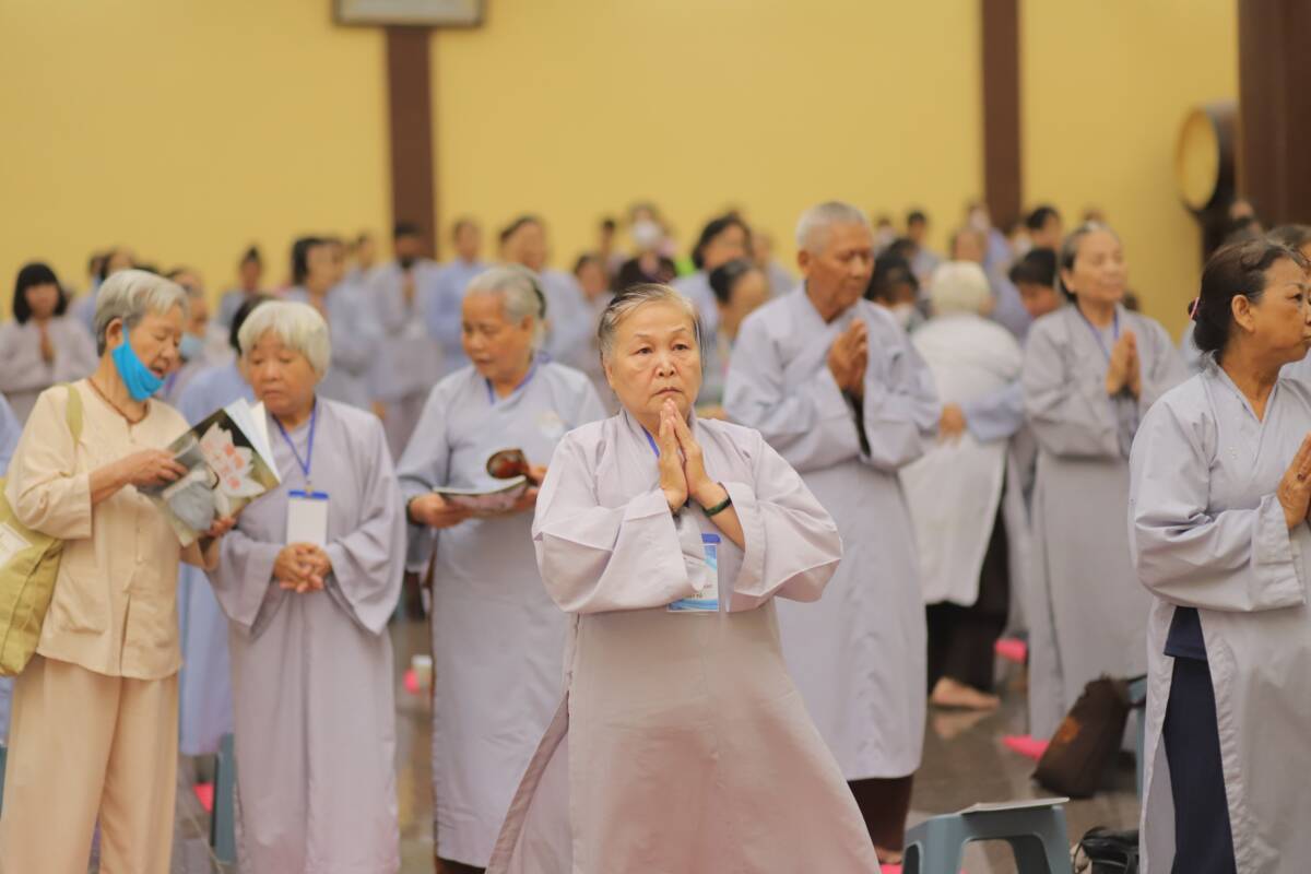 Sau thời Pháp thoại là thời khóa niệm Phật. Thầy Huệ Minh đã giảng về ý nghĩa của việc trì niệm danh hiệu Phật “Niệm Phật để suy nghĩ đến tướng tốt, đức hạnh của chư Phật mà noi theo tu tập, tự nhủ luôn sửa đổi để tâm tính ngày càng tốt hơn. Phật làm tâm hồn lắng dịu, bỏ dần tính ác, phát triển hạnh lành, quên đi đau buồn sợ hãi, đời sống được an vui, đem lại thiện nghiệp cho mình và mọi người.”