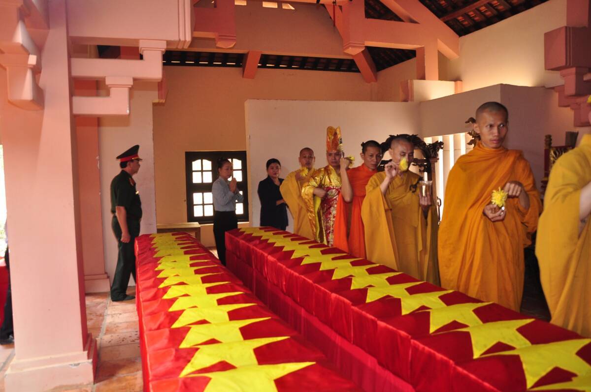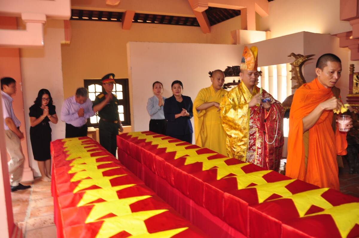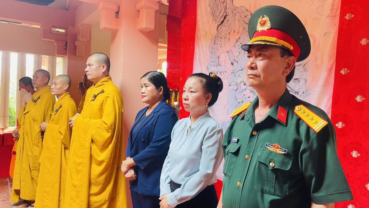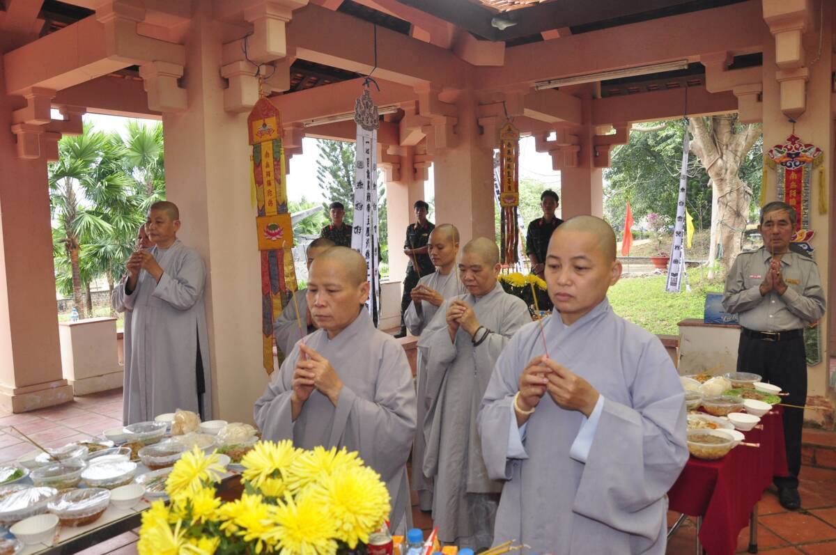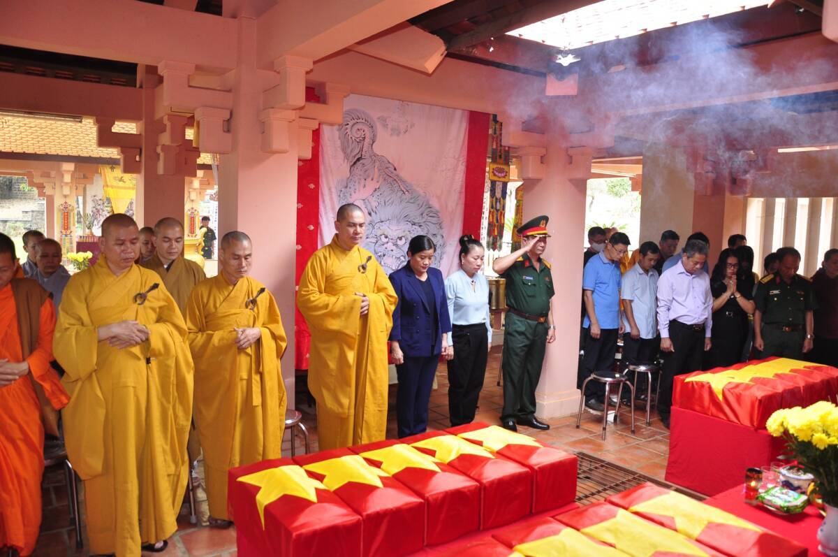 Tại buổi lễ, chư Tôn đức và lãnh đạo chính quyền đã dành phút mặc niệm và thắp nén tâm hương tưởng niệm sự hy sinh to lớn của các liệt sĩ cho nền hòa bình của dân tộc và sự toàn vẹn lãnh thổ của đất nước, mong các anh yên nghỉ ngàn thu nơi đất mẹ yên bình.