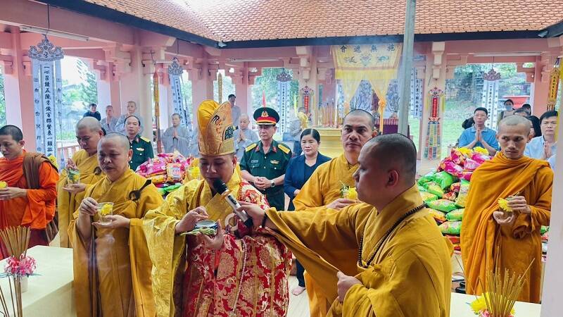 Sau cùng chư Tôn đức đã cử hành lễ nghi thức cầu siêu: Sái tịnh đạo tràng, trì chú niệm Phật gia trì, Mông sơn thí thực… chúc nguyện chư anh linh siêu sanh thoát hóa về cõi thiện lành, hồi hướng nhân gian hàm triêm lợi lạc, gió hòa mưa thuận, đất nước thái bình.