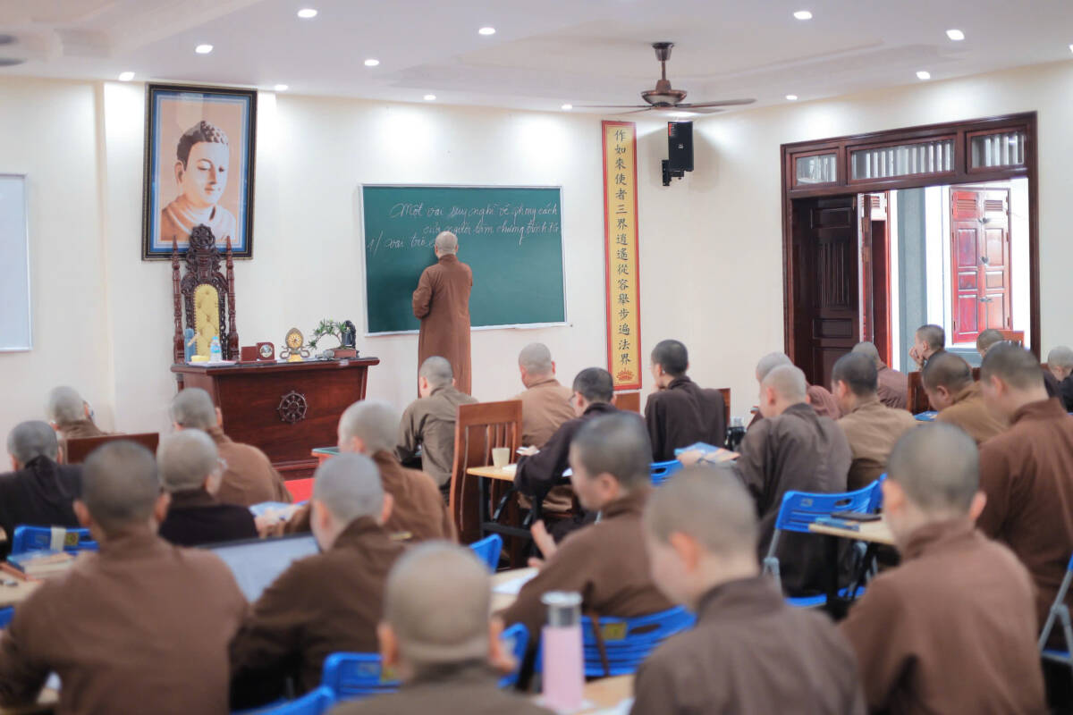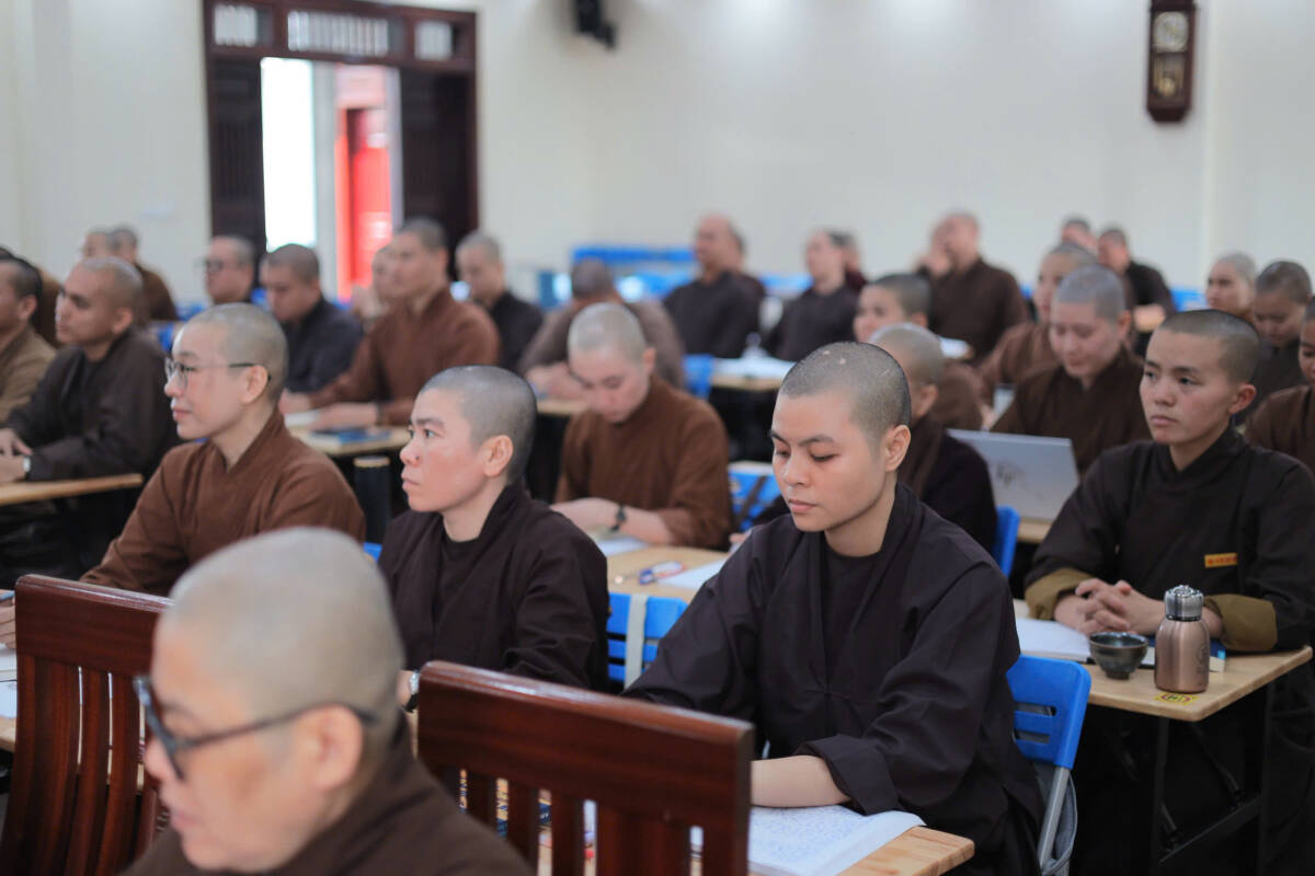 Không khí lớp học lúc trầm lắng, lúc lại sôi nổi. Mỗi lời dạy giúp cho mỗi học viên, từ chỗ còn lúng túng ban đầu, dần trở nên tự tin, điềm đạm, biết đặt tâm vào từng lời dẫn, để tiếng nói không chỉ vang lên nơi hội trường mà còn chạm đến chiều sâu của người nghe. Mỗi buổi học khép lại, nhưng dư âm vẫn còn lan tỏa. Mỗi học viên ra về không chỉ mang theo kỹ năng, mà còn mang theo một ngọn đèn nhỏ – ngọn đèn của chính niệm và trách nhiệm trong hoằng pháp. Bởi lẽ, trong thời đại hôm nay, một lời nói đúng lúc, đúng pháp, có thể cứu giúp rất nhiều người trở về với chính niệm. Bộ môn kỹ năng dẫn chương trình Phật giáo đã thực sự trở thành một bước đi thiết thực trong việc làm mới phương thức hoằng pháp, đưa đạo vào đời bằng những hình thức gần gũi mà sâu sắc. Tin rằng, từ những hạt giống đã gieo hôm nay, mai này sẽ nở thành những đóa sen thanh khiết giữa dòng đời đầy biến động. Sau đây là một số hình ảnh.