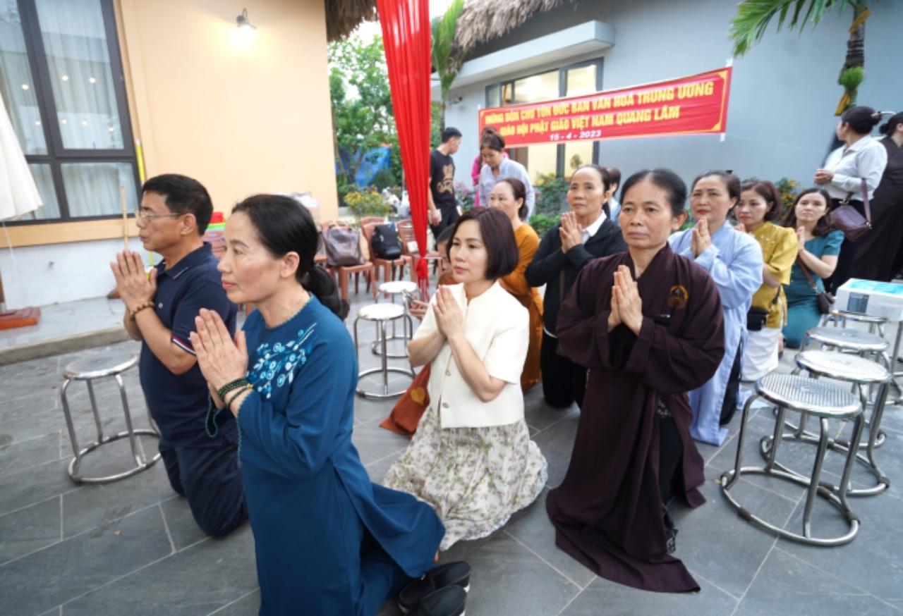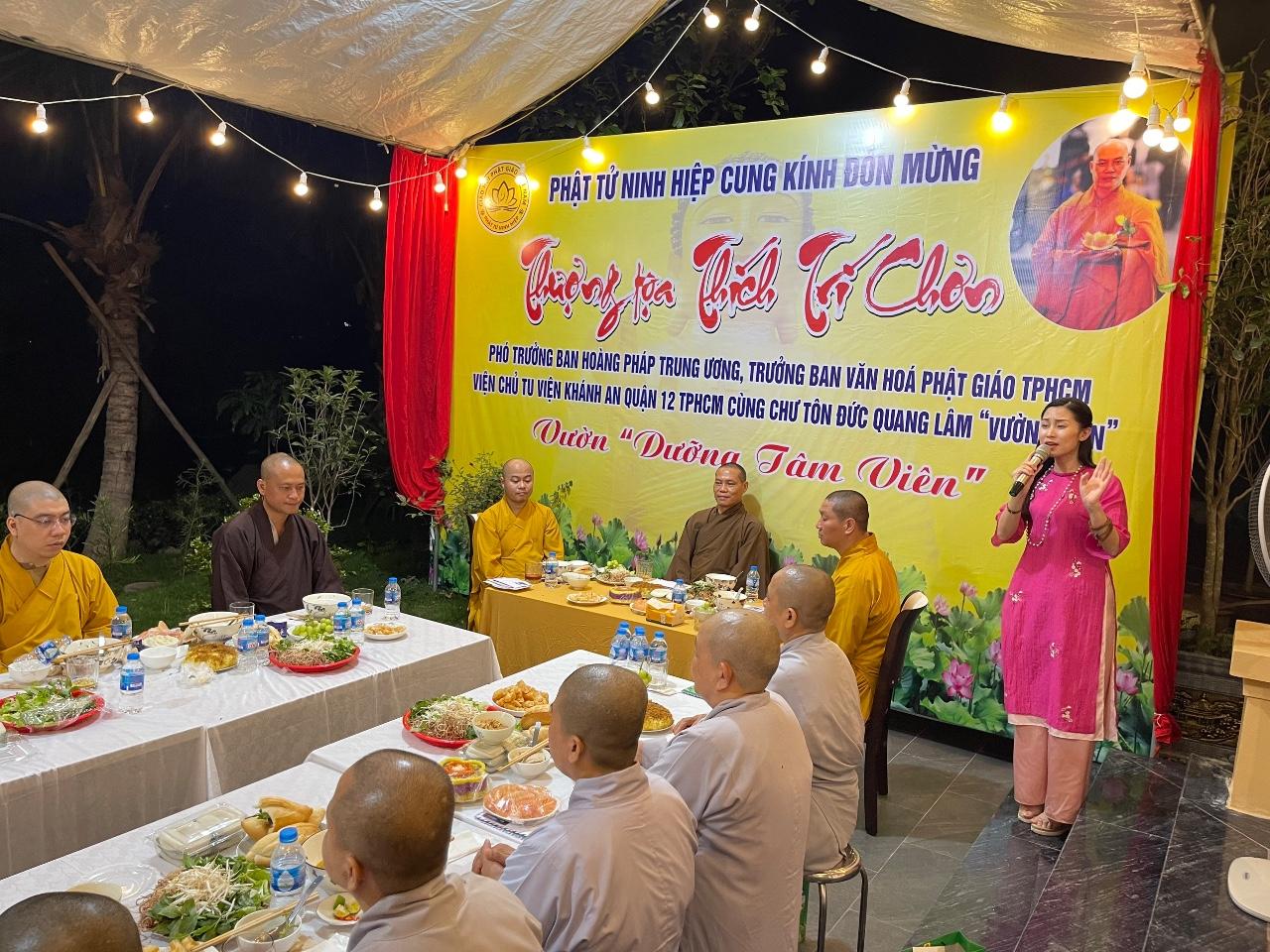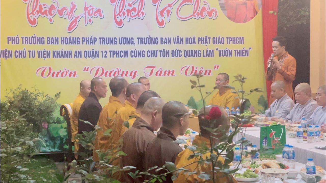 Tối ngày 15/04/2023 nhận lời thỉnh mời của gia đình Phật tử Diệu Vân và đạo tràng Phật tử thân tín tại Ninh Hiệp, Hà Nội, Thượng tọa Thích Trí Chơn – Phó Trưởng Ban Văn hóa Trung ương, viện chủ Tu viện Khánh An TP.HCM cùng chư Tôn đức Ban Văn hóa Trung ương GHPGVN đã quang lâm vườn thiền Dưỡng Tâm viên gặp gỡ và chia sẻ pháp thoại ngắn với chủ đề “Tịnh hóa thân tâm”.