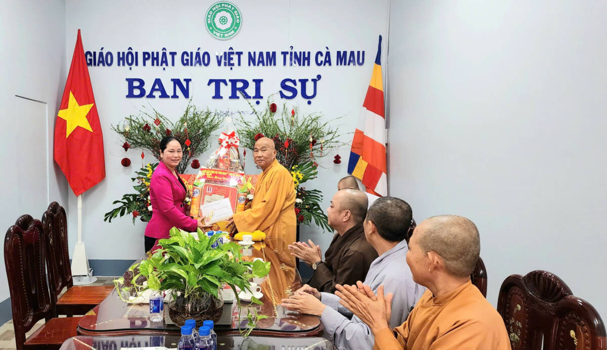 10 giờ sáng cùng ngày, tại Trụ sở BTS PG tỉnh Cà Mau, Thượng tọa Thích Phước Lợi và Đại đức Thích Phước Hạnh đã đón tiếp đoàn Sở Dân tộc và Tôn giáo tỉnh do bà Nguyễn Thu Tư, Giám đốc Sở, dẫn đầu đến thăm và chúc Tết.