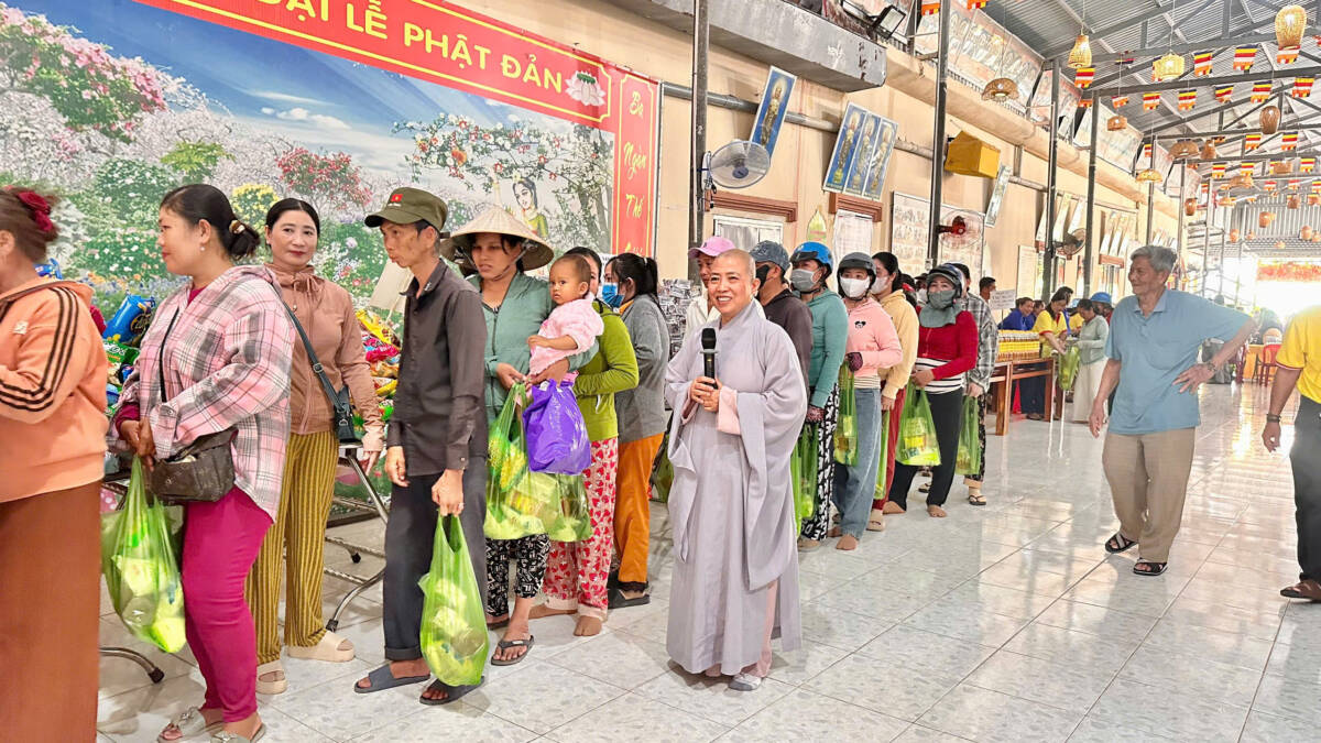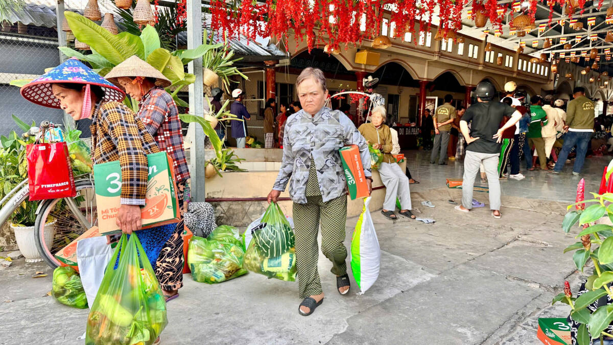 Ngay từ đầu giờ chiều, sân chùa đã rộn ràng bước chân người dân. Không khí chuẩn bị Tết hiện diện khắp nơi, từ những nụ cười hiền hậu, ánh mắt rạng rỡ cho đến những lời chào hỏi thân tình. Ở đây, không có sự ngại ngần của người nhận, cũng không có khoảng cách của người trao, tất cả cùng gặp nhau bằng sự chân thành và hoan hỷ.