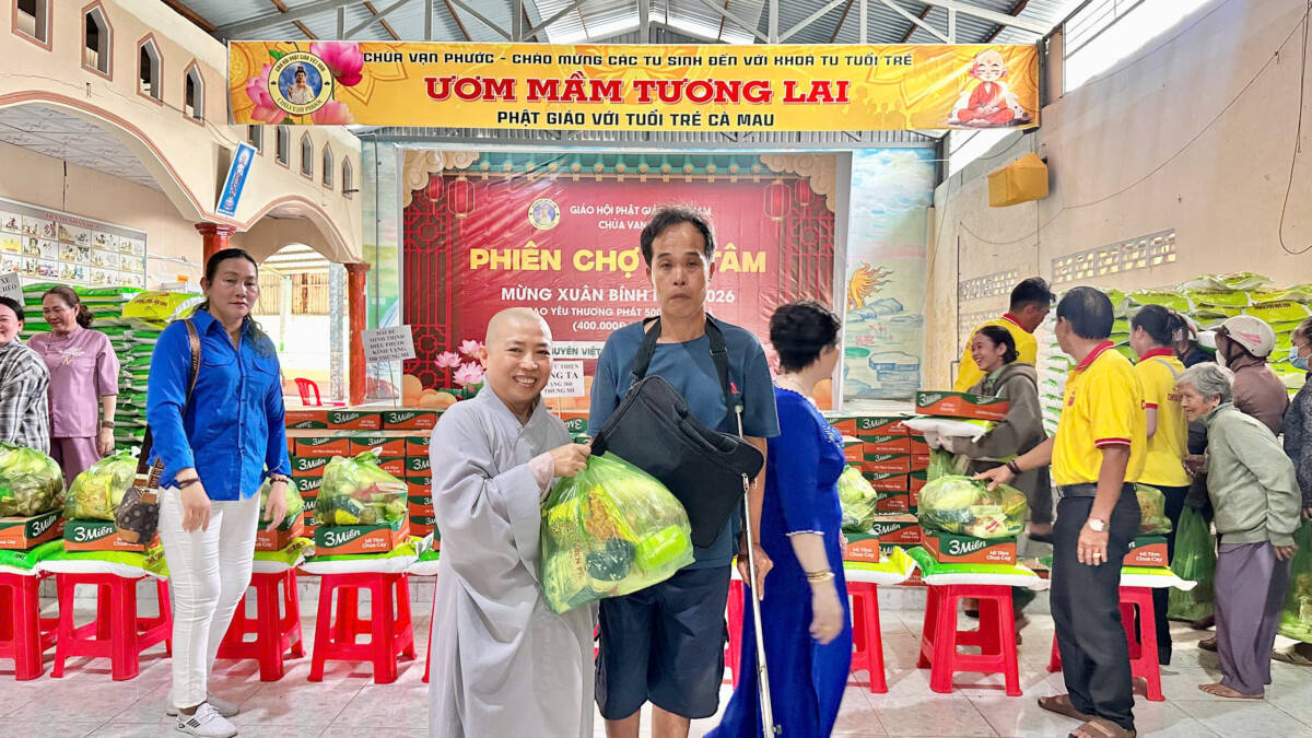 PGĐS- Khi những cơn gió chướng mang theo hơi thở mùa xuân len lỏi về miền đất cực Nam Tổ quốc, vào chiều ngày 02/2/2026 trong không gian yên bình của chùa Vạn Phước (ấp Lê Năm, xã Nguyễn Việt Khái, tỉnh Cà Mau) có một mùa xuân rất khác đã nở hoa, đó chính là phiên chợ Từ Tâm mừng Xuân Bính Ngọ, do Sư cô Thích Nữ Diệu Minh, trụ trì chùa phối hợp cùng chánh quyền địa phương tổ chức cho 500 hộ gia đình nghèo.