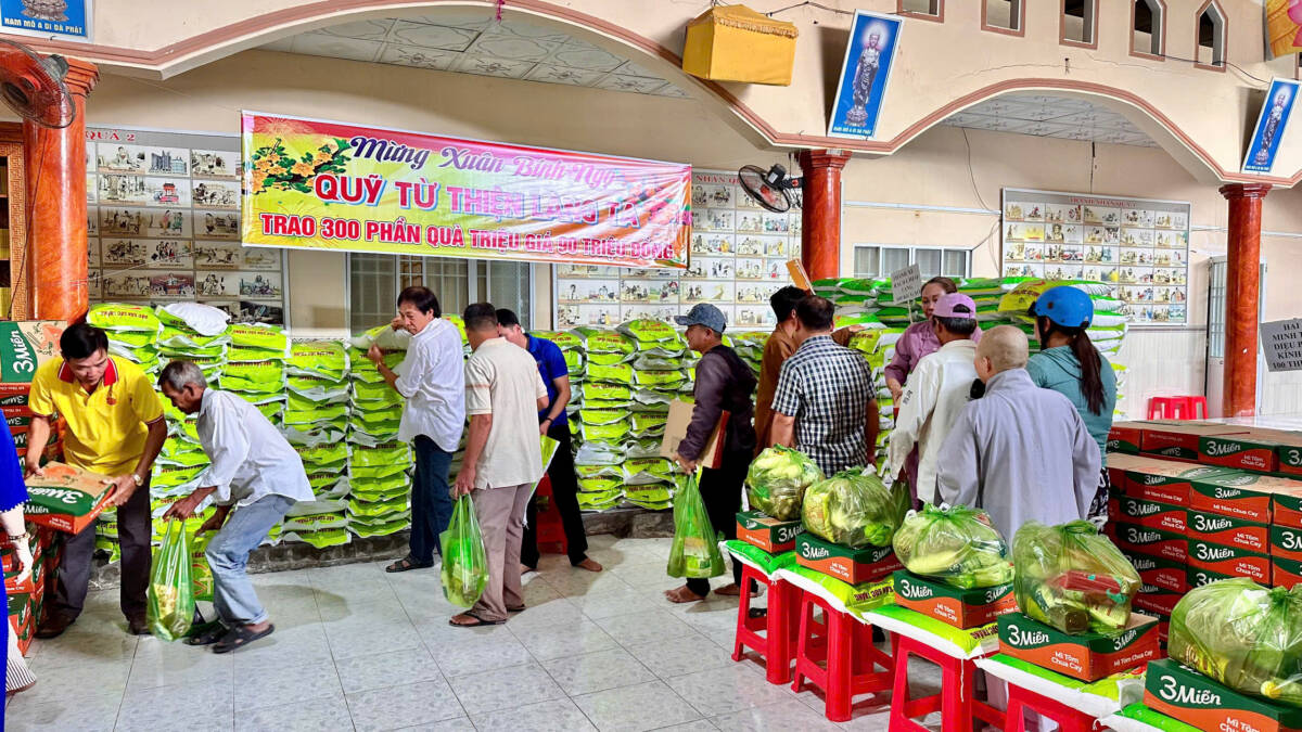 PGĐS- Khi những cơn gió chướng mang theo hơi thở mùa xuân len lỏi về miền đất cực Nam Tổ quốc, vào chiều ngày 02/2/2026 trong không gian yên bình của chùa Vạn Phước (ấp Lê Năm, xã Nguyễn Việt Khái, tỉnh Cà Mau) có một mùa xuân rất khác đã nở hoa, đó chính là phiên chợ Từ Tâm mừng Xuân Bính Ngọ, do Sư cô Thích Nữ Diệu Minh, trụ trì chùa phối hợp cùng chánh quyền địa phương tổ chức cho 500 hộ gia đình nghèo.