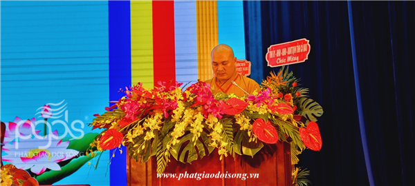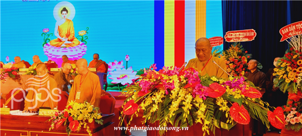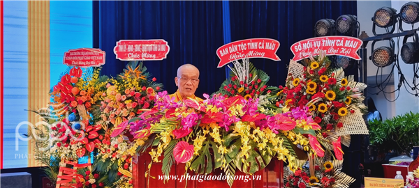 Ban đạo từ cho Đại hội,Hòa thượng Thích Thiện Nhơn – Chủ tịch HĐTS GHPGVN ghi nhận, biểu dương những kết quả tốt đẹp của Ban Trị sự và toàn thể Tăng ni, Phật tử thành phố Cà Mau đã đạt được trong nhiệm kỳ qua. Hòa thượng tán thán công đức các công tác hoạt động Phật sự của BTS Phật giáo Cà Mau đạt được trong 5 năm qua. Đồng thời Hòa thượng khuyến tấn Tăng Ni, Phật tử luôn đoàn kết, hòa hợp, trưởng dưỡng đạo tâm trang nghiêm Giáo hội, thực hiện phương châm “Đạo pháp – Dân tộc – Chủ nghĩa xã hội”, nhằm xây dựng đất nước vững mạnh, nhân dân an lạc.