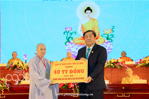 Để hưởng ứng phát động công tác tháng vì người nghèo của Trung Ương MTTQVN, chư tôn đức trong Ban Từ Thiện xã Phật giáo tỉnh cũng đã trao các bản vàng tượng trưng cho số tiền là: 56 Tỷ đồng; ông Trần Văn Hiện – Ủy viên Ban Thường vụ tỉnh uỷ, Chủ tịch UB MTTQ VN tỉnh Cà Mau đại diện đón nhận.