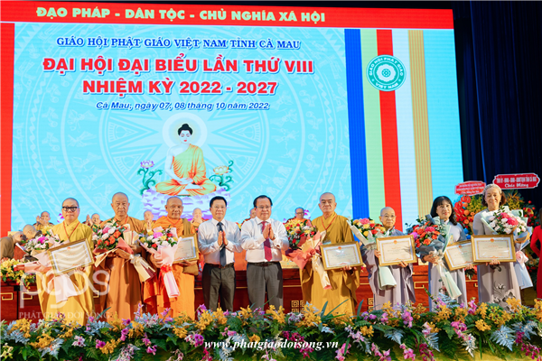 Để Tán dương công đức tinh thần phụng sự của toàn thể thành viên Ban Trị sự, dịp này, HĐTS GHPGVN, UBND tỉnh Cà Mau đã tặng nhiều Bằng Tuyên dương Công đức, Bằng khen đến các tập thể, cá nhân BTS GHPGVN tỉnh đã có những đóng góp tích cực cho các hoạt động Phật sự trong nhiệm kỳ qua.
