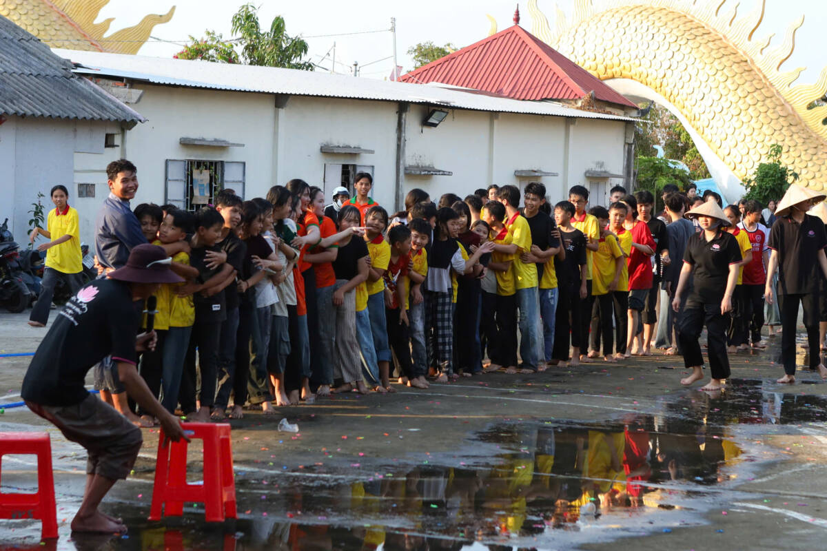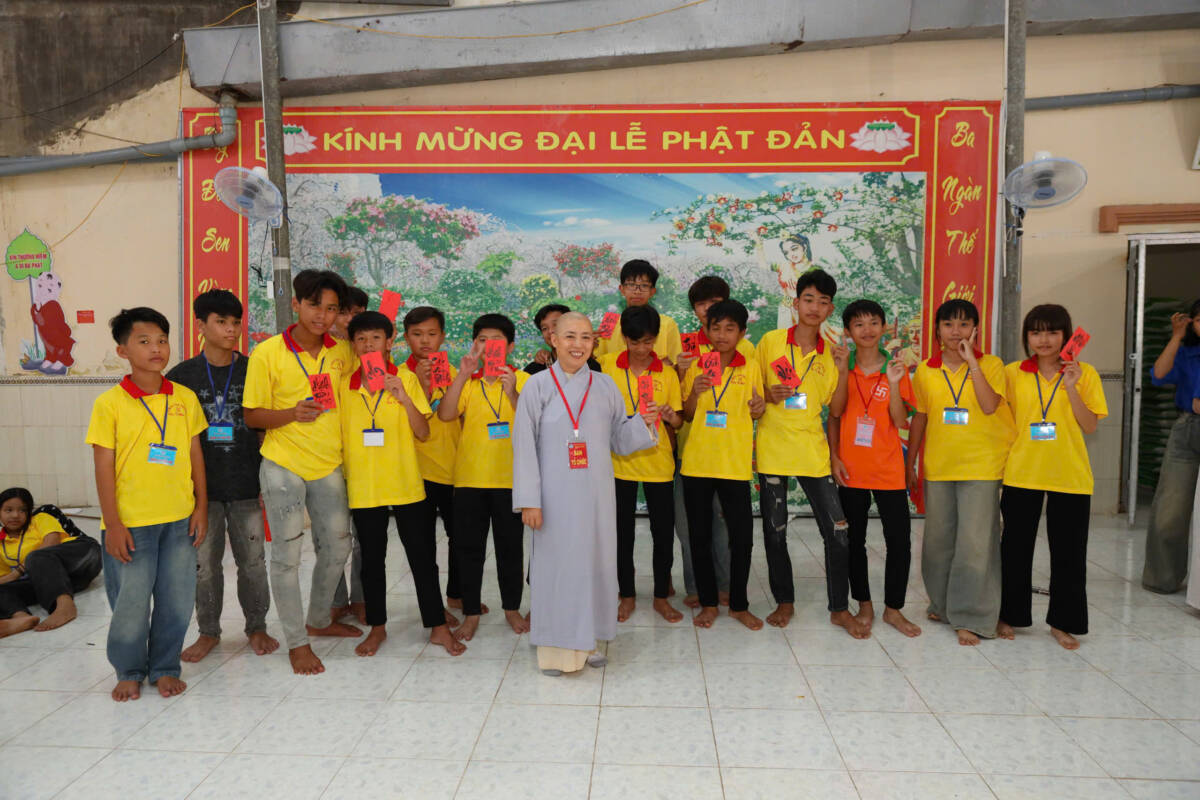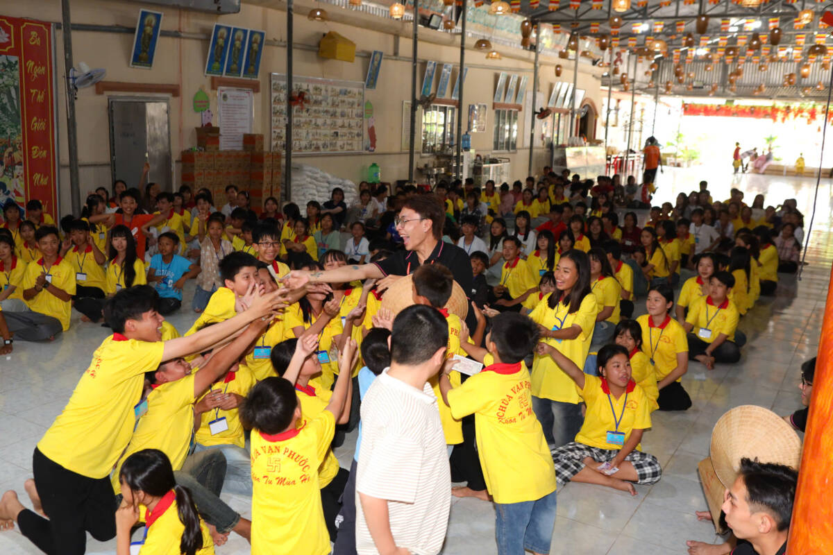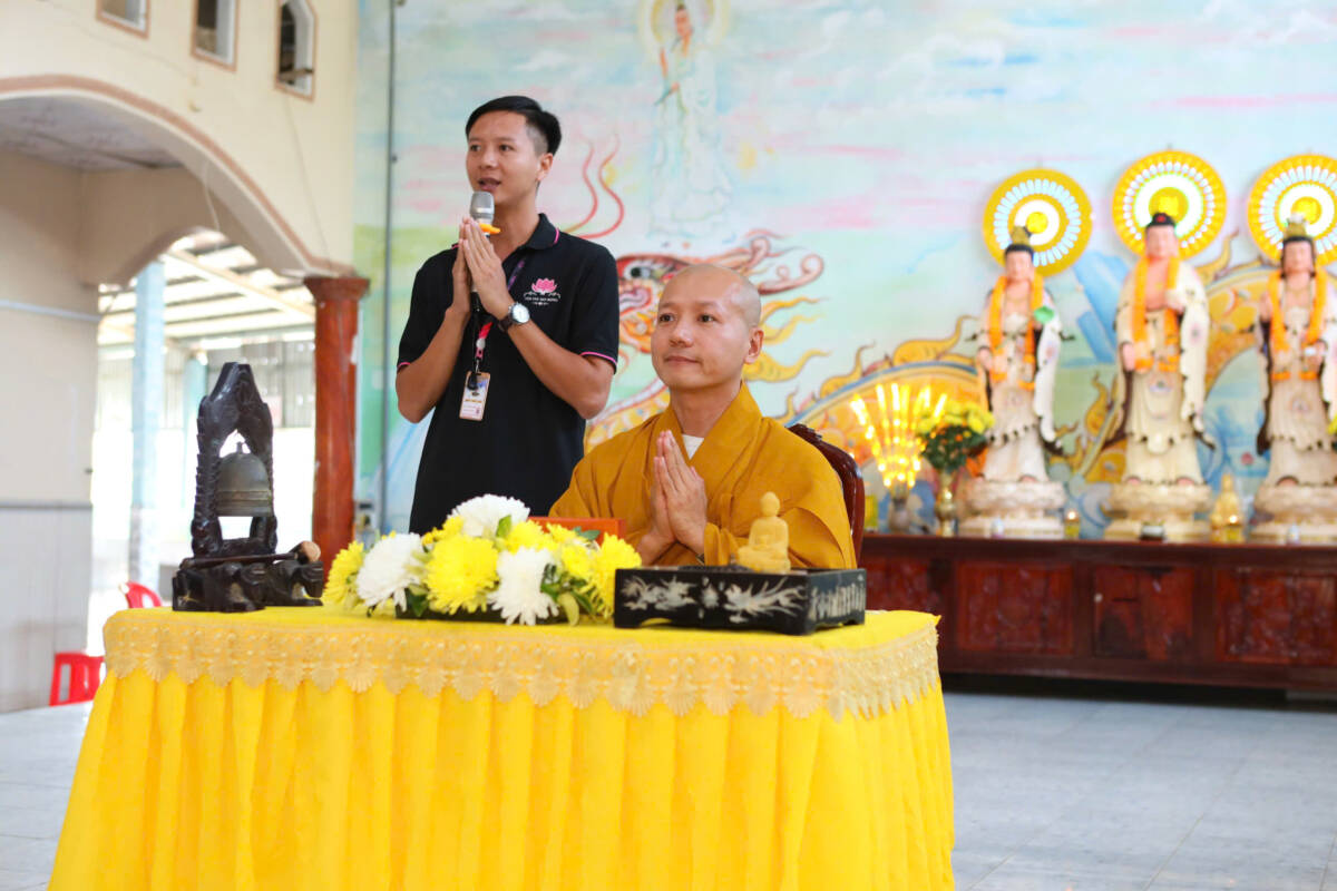 Khi những tia nắng ấm đầu ngày lan tỏa nơi miền quê yên bình, đại chúng cùng trở về hội trường, lắng lòng thanh tịnh. Trong không khí trang nghiêm, các bạn được chư Tôn đức hướng dẫn tập thể dục, thiền hành, dâng hoa cúng dường mười phương chư Phật, học theo hạnh nguyện lắng nghe của đức Bồ tát Quan Thế Âm, phát nguyện làm lành, lánh ác, sống hiếu thảo, trở thành những công dân có ích, góp phần xây dựng quê hương giàu đẹp, nghĩa tình.