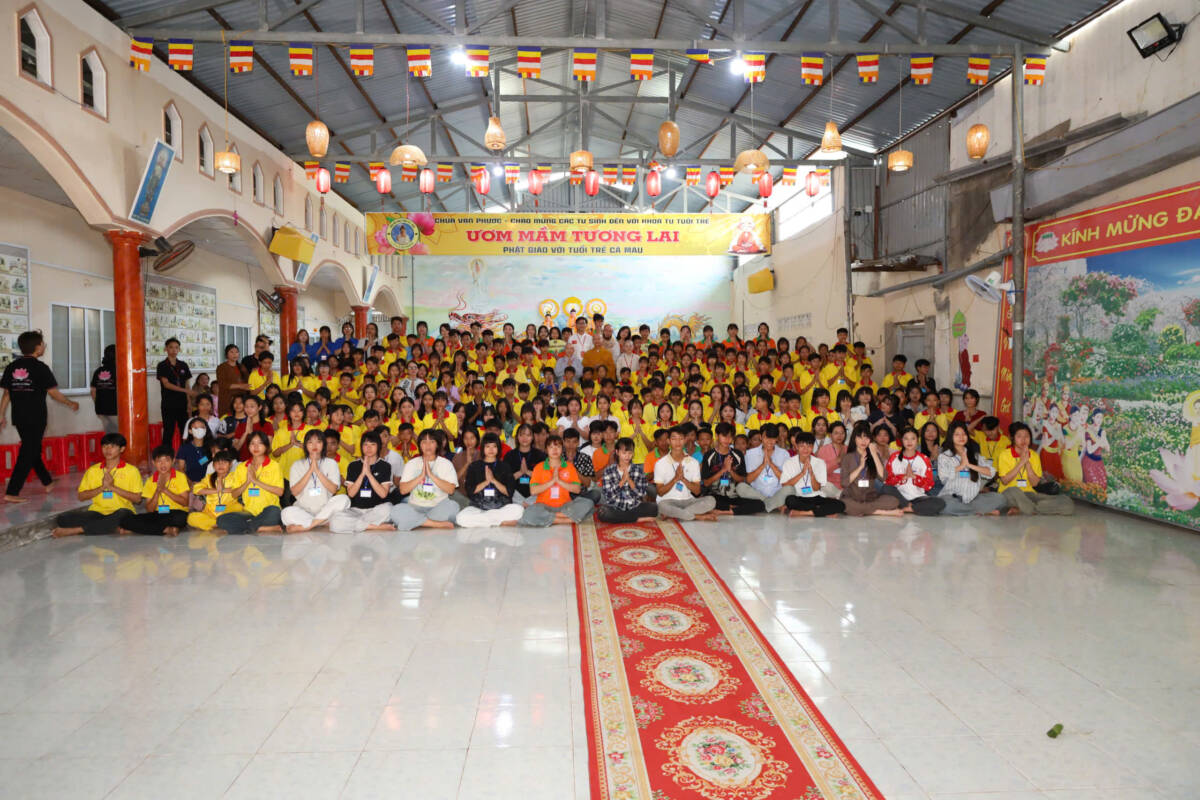 PGĐS- Ngày 01/02/2026 (nhằm ngày 14 tháng Chạp năm Ất Tỵ), hơn 300 bạn trẻ đã trở về chùa Vạn Phước (ấp Lê Năm xã Nguyễn Việt Khái) tham dự khóa tu Ươm Mầm Tương Lai lần thứ 15, chủ đề: “Khai Tâm Đón Tết”, do Sư cô Thích Nữ Diệu Minh – Chánh Thư ký Phân ban Ni giới Phật giáo tỉnh Cà Mau, trụ trì chùa tổ chức.