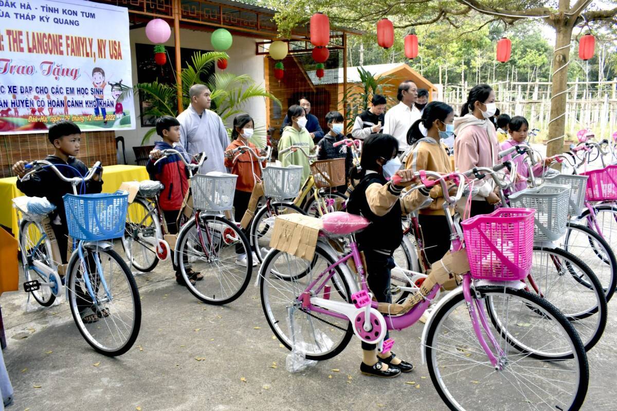 Kon Tum: Chùa Tháp Kỳ Quang trao 100 chiếc xe đạp cho học sinh dân tộc thiểu số trên địa bàn huyện Đăk Hà