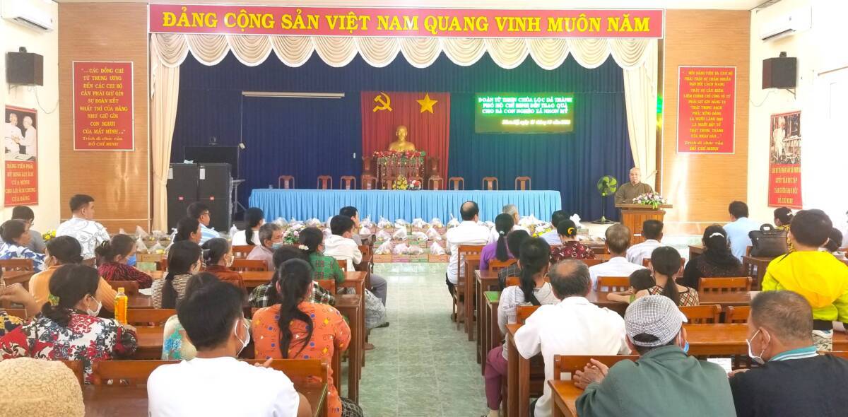 Với phương châm “cả nước chung tay vì người nghèo, không để ai bị bỏ lại phía sau” Thượng tọa Thích Trí Trường, Phó ban trị sự GHPGVN Q.8 trụ trì chùa Lộc Dã đã hướng dẫn đoàn từ thiện đến và trao hơn 100 suất quà gồm: mì, nước tương, dầu ăn, đường … bao thư tiền mặt, mỗi phần quà trị giá 400 ngàn đồng.