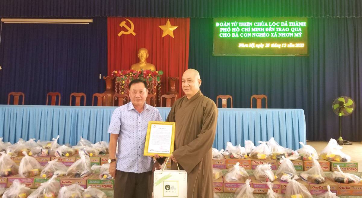 Bên cạnh đó Thượng tọa cùng đoàn từ thiện Chùa Lộc Dã cũng đã đến khảo sát một cây cầu trên địa bàn xã Nhơn Mỹ, lắng nghe ý kiến chia sẻ và đề nghị hỗ trợ của chính quyền địa phương xã Nhơn Mỹ trong thời gian tới.