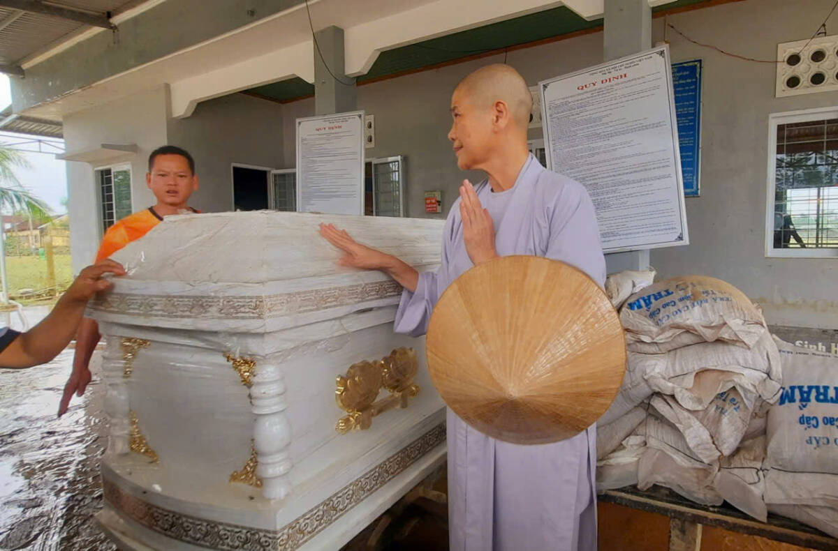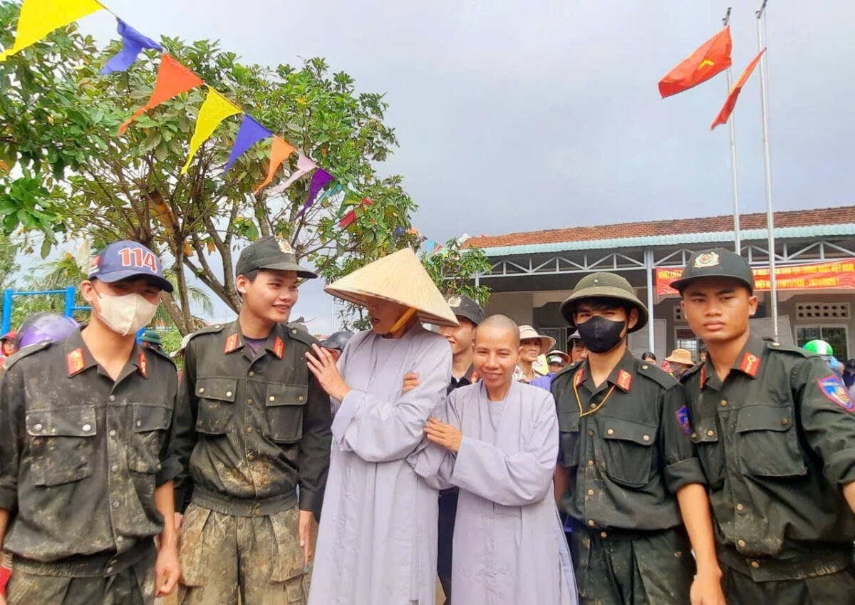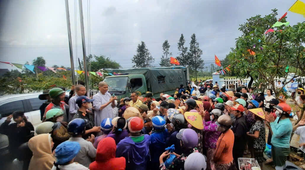 Ni trưởng Thích Nữ Tâm Nguyệt cũng rất xúc động khi người dân nơi đây đã mang tặng lại thùng sữa cho đoàn để uống lấy sức đi làm từ thiện. “Một hành động đẹp mà tôi mới thấy trong suốt hàng chục năm cùng Báo Thanh Niên đi làm từ thiện. Chúng tôi đến đây không phải trao giá trị vật chất gì nhiều cho bà con, mà chỉ mang đến chút tấm lòng của quý phật tử chùa Phổ Hiền từ miền Nam gửi đến bà con vùng lũ Đắk Lắk”, Ni trưởng Thích Nữ Tâm Nguyệt nói.
