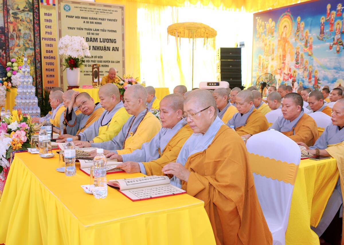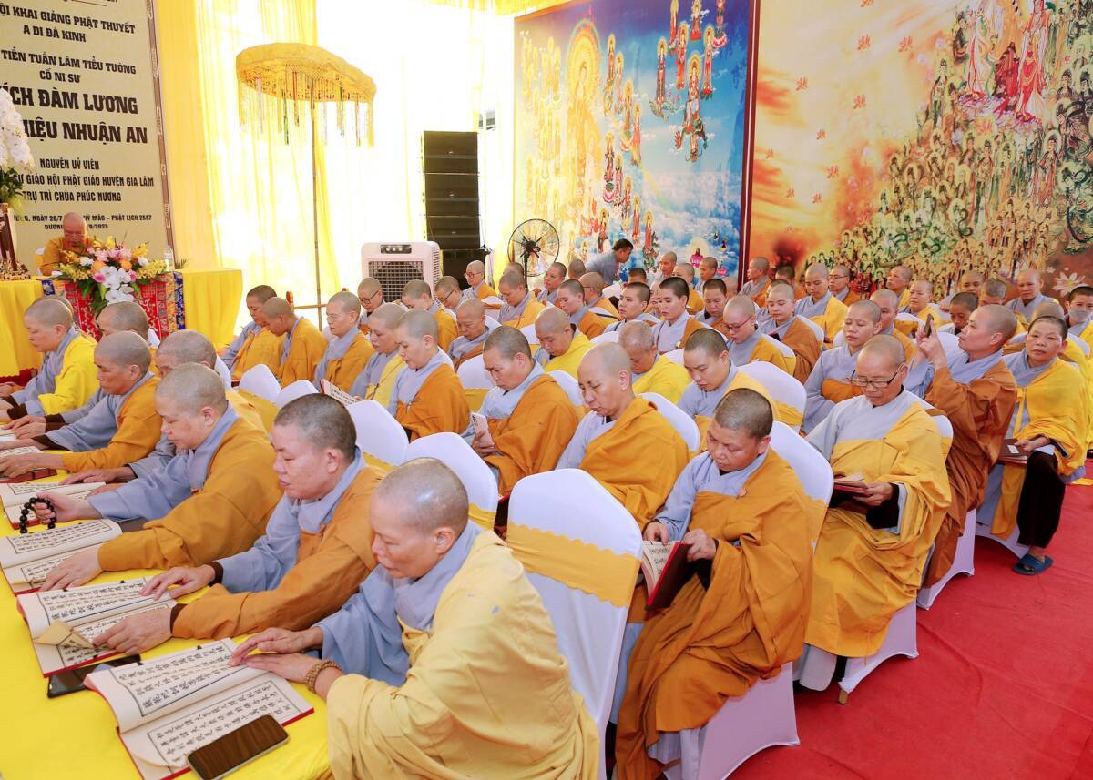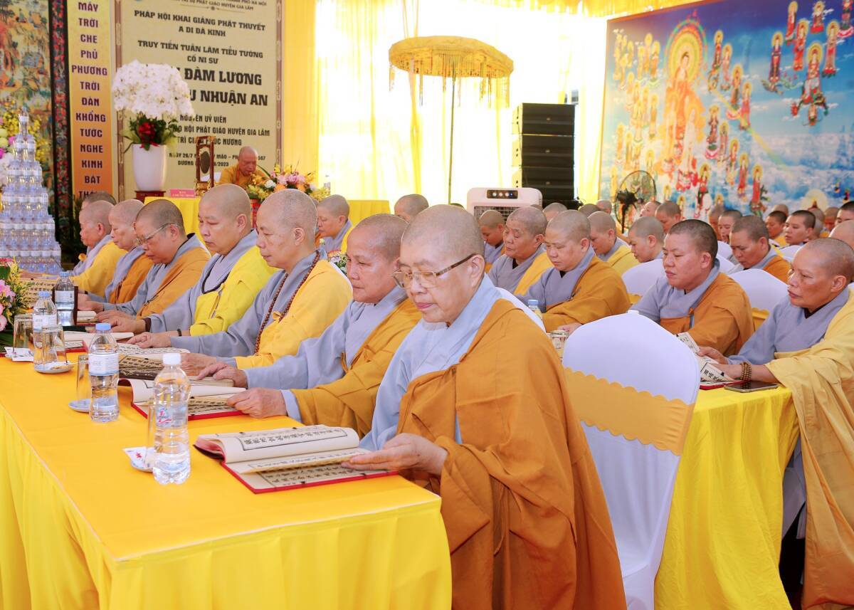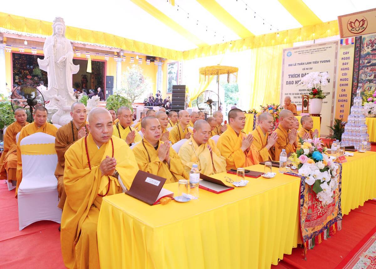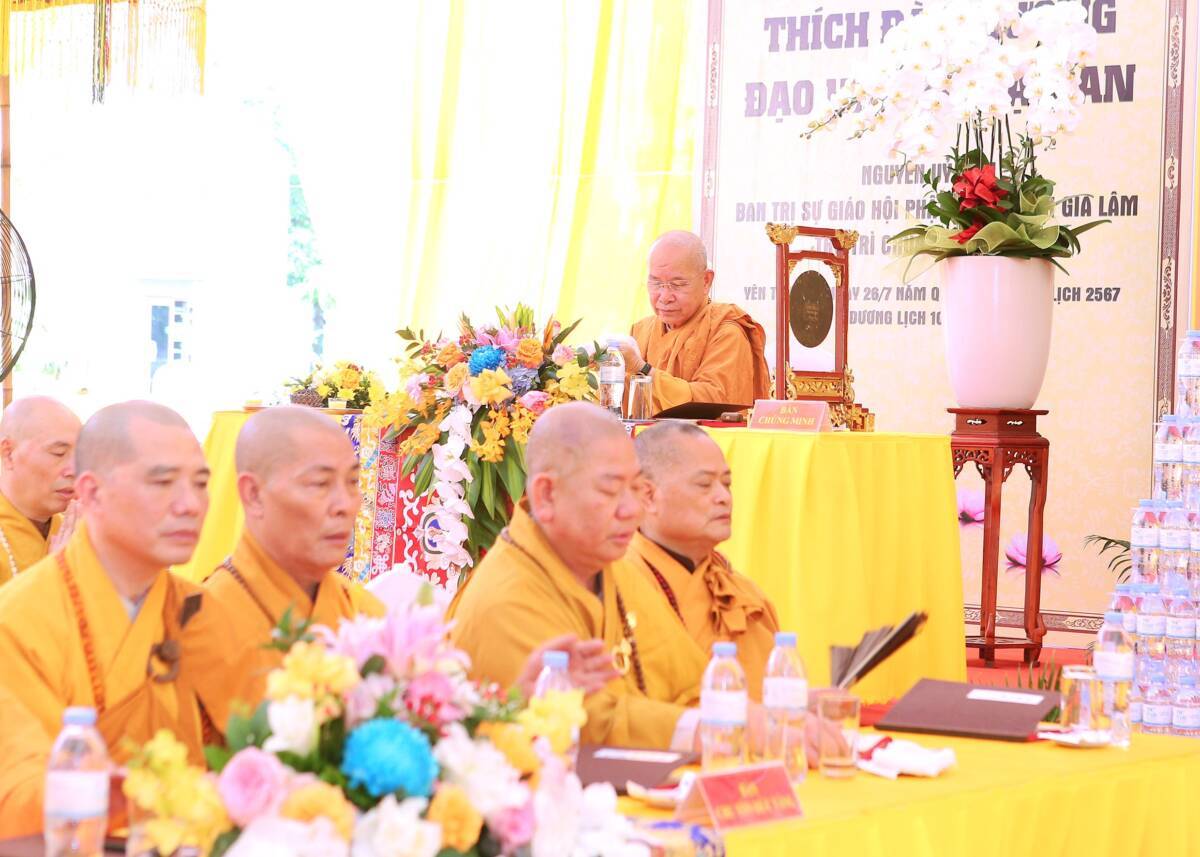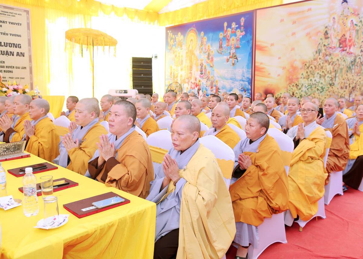 Quang lâm chứng minh có, Hòa thượng Thích Thanh Giác – Ủy viên HĐTS, Phó Trưởng Ban thường trực Ban Hoằng pháp TƯ, Trưởng sơn môn Trà Lũ Trung; Hòa thượng Thích Thiện Tri chứng minh ban trị sự Phật giáo tỉnh Nam Định.Thượng tọa Thích Thanh Lợi – Trưởng ban trị sự Phật giáo thành phố Nam Định tỉnh Nam Định. Thượng tọa Thích Thanh Nghĩa – Ủy viên Thường trực Ban Trị sự, Trưởng ban Ban Nghi lễ GHPGVN tỉnh Thái Bình, trưởng ban Trị sự Phật giáo huyện Quỳnh Phụ. Thượng tọa Thích Minh Tuấn – Ủy viên HĐTS, Phó trưởng BTS GHPGVN thành phố Hà Nội; Thượng tọa Thích Thanh Quy – Chứng minh BTS GHPGVN huyện Gia Lâm. Ngoài ra còn có sự hiện diện của Thượng tọa Thích Quảng Thiện – Ủy viên BTS – GHPGVN thành phố Hà Nội, Trưởng BTS GHPGVN huyện Gia Lâm, cùng chư Tôn đức Thường trực BTS GHPGVN TP.Hà Nội và chư Tôn đức Tăng Ni các quận, huyện, thị trong toàn thành phố, quý vị lãnh đạo đại diện chính quyền địa phương sở tại và đông đảo Phật tử xa gần.Hòa thượng Thích Thanh Giác giảng kinh A Di Đà theo truyền thống Phật giáo miền Bắc và niệm Phật, cầu nguyện cho giác linh cố Ni sư được thượng phẩm thượng sinh.