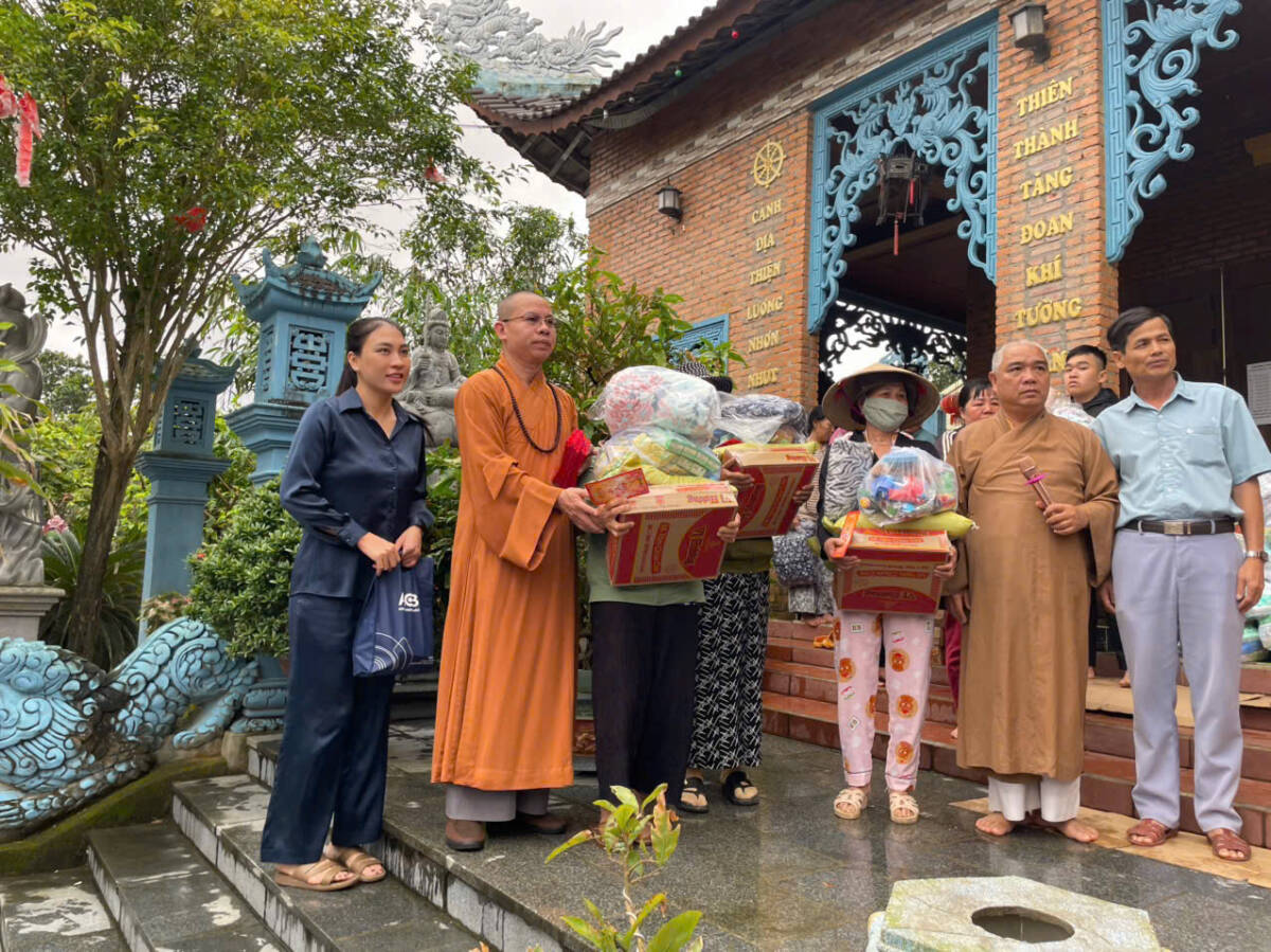 Tại chùa Thiên Quang (xã Hòa Thịnh), đoàn đã trao tặng 300 phần quà đến các hộ dân chịu thiệt hại nặng nề do mưa lũ. Mỗi phần quà gồm tiền mặt và các nhu yếu phẩm thiết yếu, với trị giá hơn 800.000 đồng, góp phần giúp bà con từng bước khắc phục hậu quả thiên tai, ổn định đời sống sinh hoạt và sản xuất.