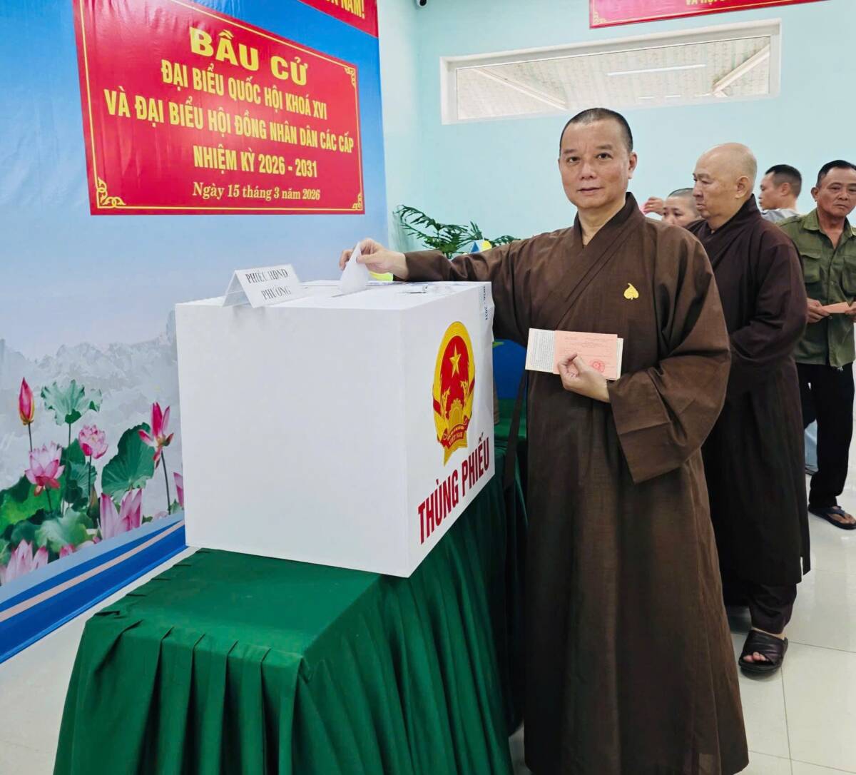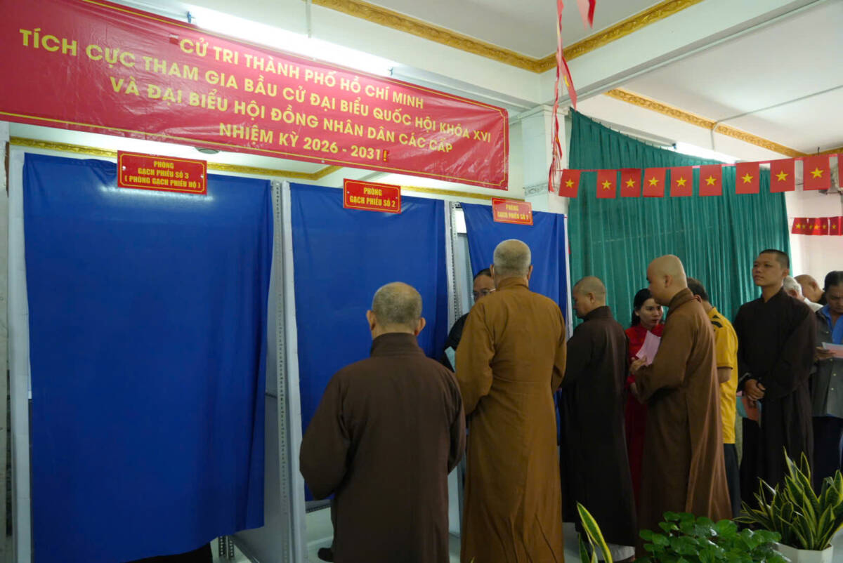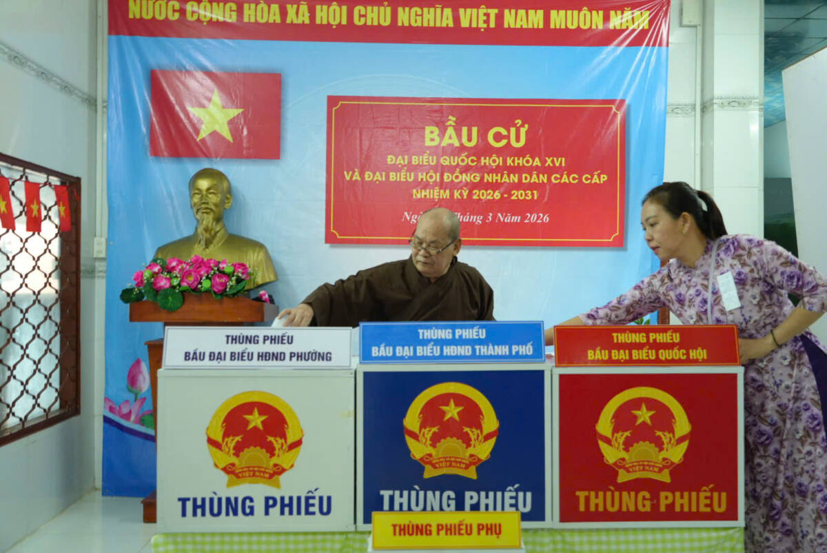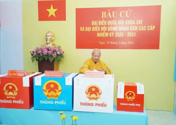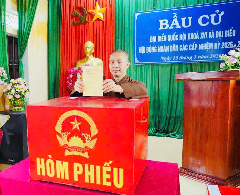PGĐS – Hôm nay 15-3, chư Tôn đức Tăng/Ni GHPGVN đi bỏ phiếu tại địa phương cư trú trên toàn quốc để bầu cử đại biểu Quốc hội khóa XVI và đại biểu Hội đồng Nhân dân các cấp nhiệm kỳ 2026-2031.