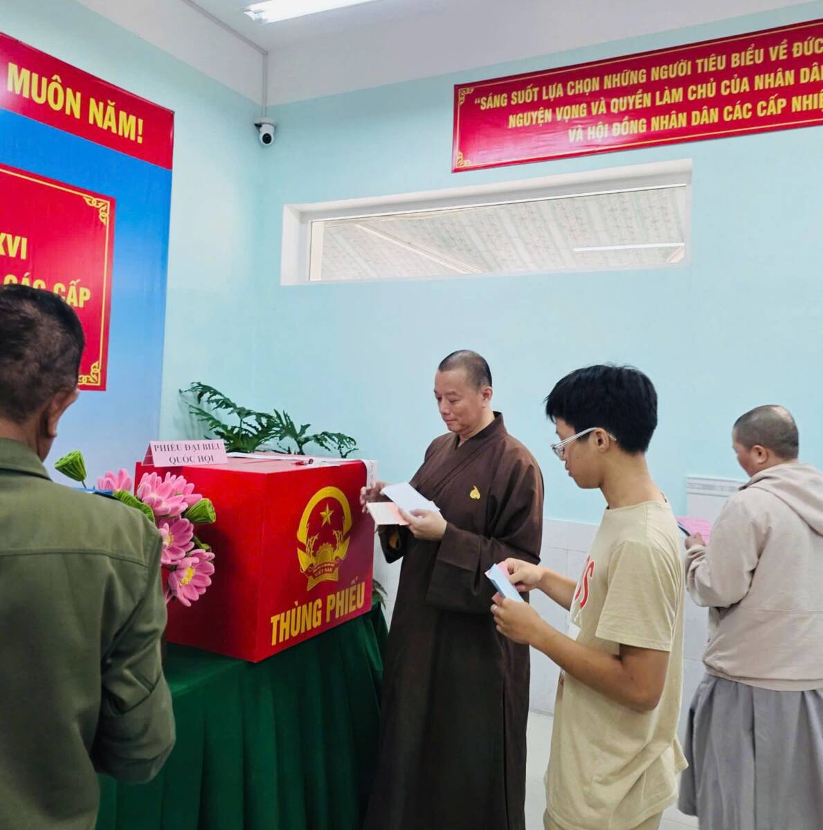 Trưởng lão Hòa thượng Thích Thiện Nhơn, Phó Pháp chủ, Chủ tịch Hội đồng Trị sự GHPGVN đi bầu cử đại biểu Quốc hội khóa XVI và đại biểu Hội đồng Nhân dân các cấp nhiệm kỳ 2026-2031 tại đơn vị bầu cử số 1 Phường Nhiêu Lộc, TPHCMTrưởng lão Hòa thượng Thích Thanh Nhiễu bỏ phiếu bầu Đại biểu Quốc hội và Hội đồng Nhân dân các cấp tại điểm số 11, Cửa Nam, Hà NộiThượng tọa Thích Đức Thiện – Phó Chủ tịch, Tổng thư ký HĐTS Trung ương Giáo hội, tham gia bỏ phiếu tại đơn vị bầu cử tỉnh Bắc NinhHòa thượng Thích Thanh Quyết, Phó Chủ tịch Hội đồng Trị sự GHPGVN, Trưởng ban Giáo dục Phật giáo TƯ, đi bỏ phiếu tại đơn vị bầu cử huyện Sóc Sơn, Hà Nội