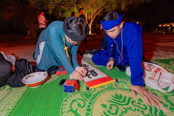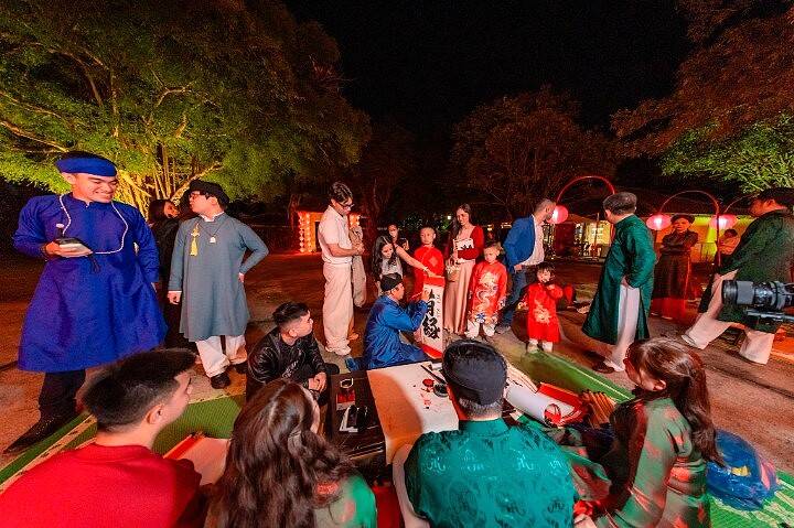 Họ tìm về Tết xưa không phải để xem một màn trình diễn, mà để trực tiếp tham gia vào dòng chảy lịch sử. Từ sự hào hứng khi tham gia những trò chơi cung đình đầy trí tuệ như Xăm hường, Đầu hồ, đến đôi tay tỉ mỉ gói trọn tâm tình vào những chiếc bánh chưng, bánh tét dâng tiến tiền nhân; tất cả đều toát lên một vẻ đẹp tinh tế vô cùng. Giữa mùi mực tàu thơm dịu và hơi thở của đất Cố đô, mỗi dòng chữ thư pháp cầu “An” được viết ra chính là một lời cam kết thiêng liêng về việc giữ gìn bản sắc dân tộc trước làn sóng hội nhập.