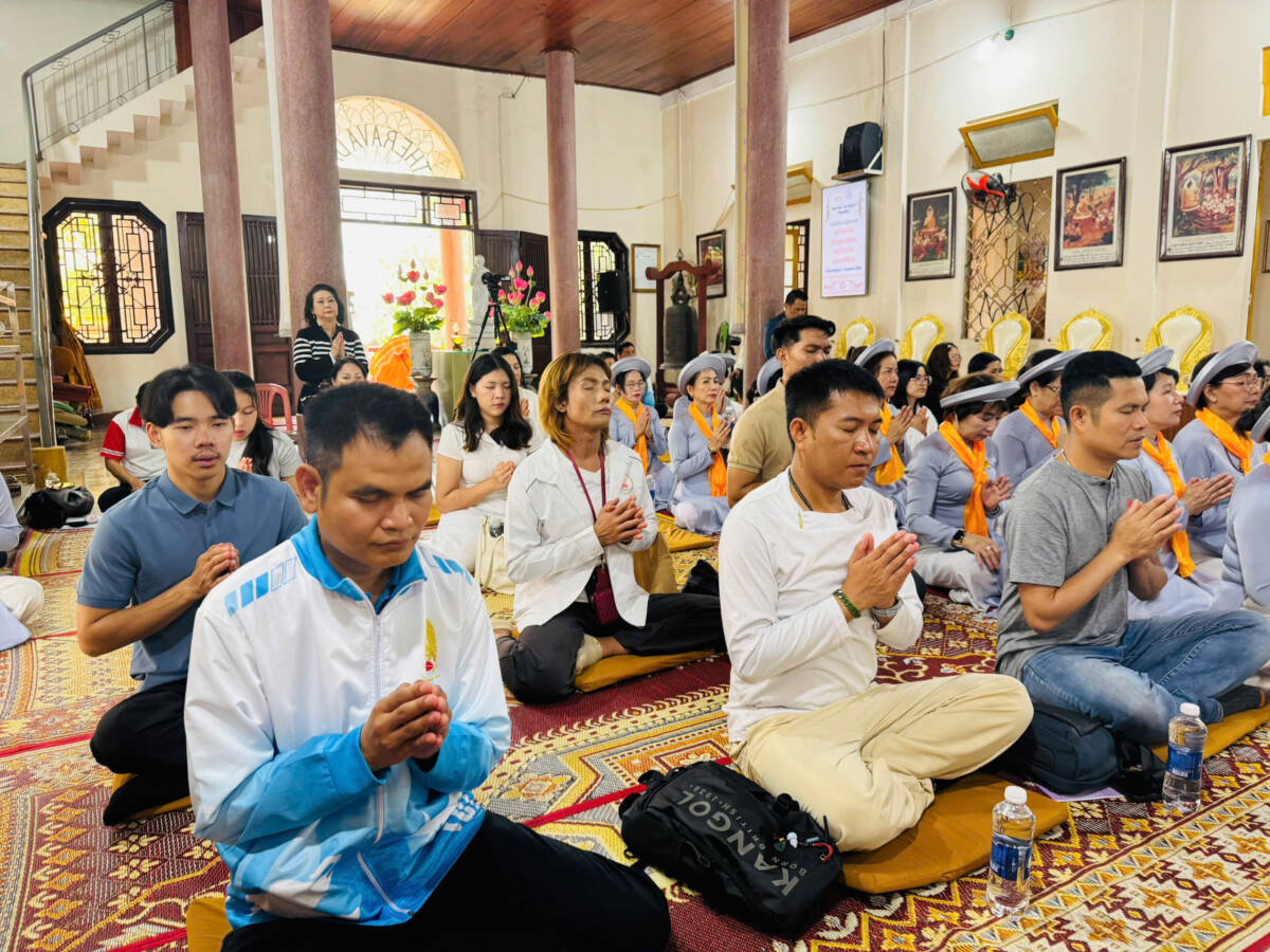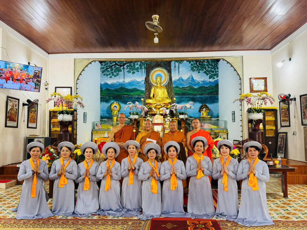 Đón tiếp phái đoàn trong không gian thắm tình đạo vị tại Chánh điện là Đại đức Thích Pháp Hiếu – Phó Chánh Văn phòng Ban Thông tin Truyền thông Trung ương, Ủy viên Ban Phật giáo Quốc tế Trung ương GHPGVN, Ủy viên Hội Hữu nghị Việt Nam – Thái Lan, Trụ trì Chùa Tam Bảo, cùng chư Tăng Phật Tử Việt – Lào – Thái Lan.