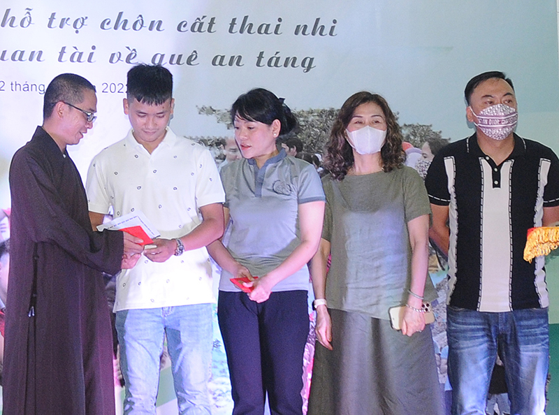 Buổi lễ có sự tham dự của: HT. Thích Thiện Tâm – Viện chủ tu viện Phúc Lâm Tây Thiên (Canada); TT. Thích Huệ Vinh – Trụ trì chùa Quán Thế Âm (Ngũ Hành Sơn, TP. Đà Nẵng); ĐĐ. Thích Pháp Minh – Trưởng nhóm sư phụ thai nhi; Sư cô Thích Nữ Pháp Đăng – thành viên nhóm; cùng quý mạnh thường quân, phật tử đồng tham dự.