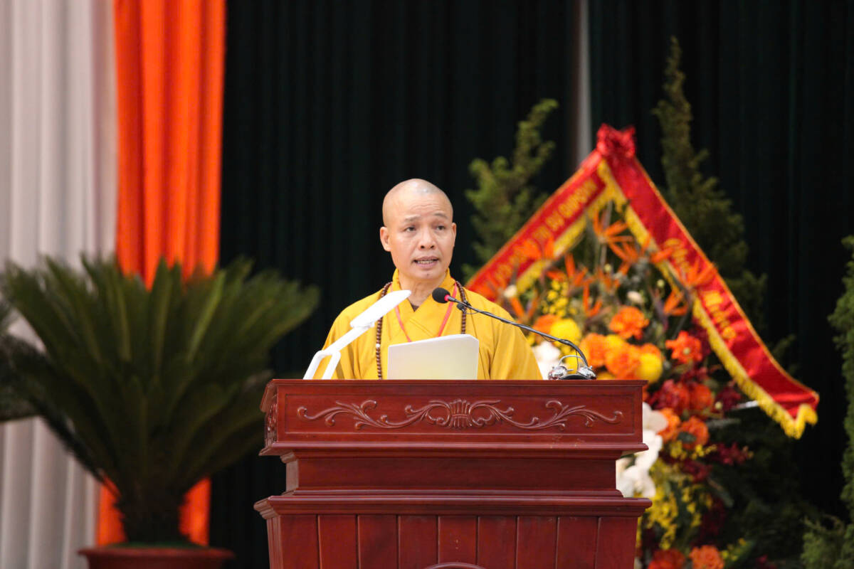 Thượng toạ Thích Minh Quang báo cáo tổng kết tại Đại hội