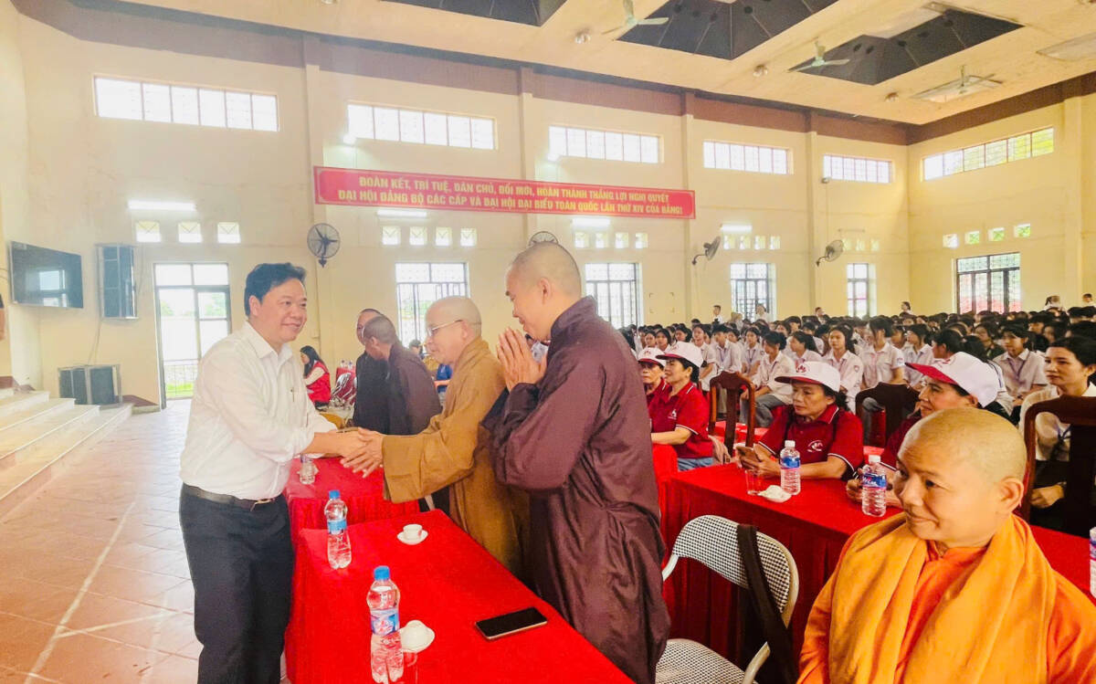 Đón tiếp phái đoàn là TT. Thích Nguyên Thành – Ủy viên Thường trực HĐTS, Phó ban Kinh tế Tài chánh TW, Trưởng ban Trị sự GHPGVN tỉnh Thái Nguyên, cùng quý Tăng Ni và chính quyền địa phương. Đồng thời có sự phối hợp hỗ trợ của SC. Thích Trí Khang (chùa Luông – Phổ Yên, Thái Nguyên), cùng tập thể cán bộ, giáo viên và học sinh Trường THPT Phú Bình đã góp phần giúp chương trình diễn ra thành công viên mãn.