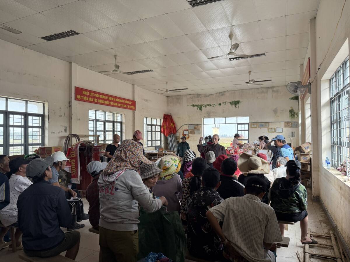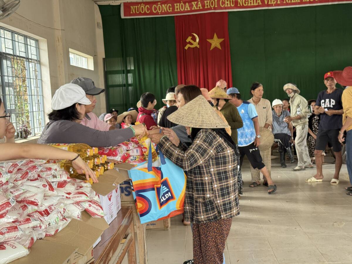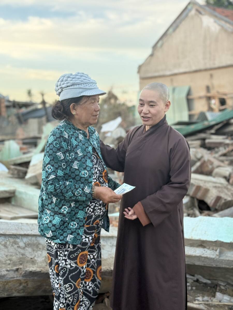 Từ TP.HCM, đoàn di chuyển đến xã Hòa Xuân. Do đường làng nhỏ hẹp và lầy lội, đoàn phải chuyển hàng hóa sang các xe tải nhỏ để tiếp cận thôn Hiệp Đồng, nơi chịu thiệt hại nặng nề do lũ lụt. Tại đây, Ni sư Thích Nữ Nguyên Chủng và đoàn đã trao 200 phần quà đến người dân. Sau đó, đoàn tiếp tục đến thôn Cẩm Thạch để trao thêm 30 phần quà.