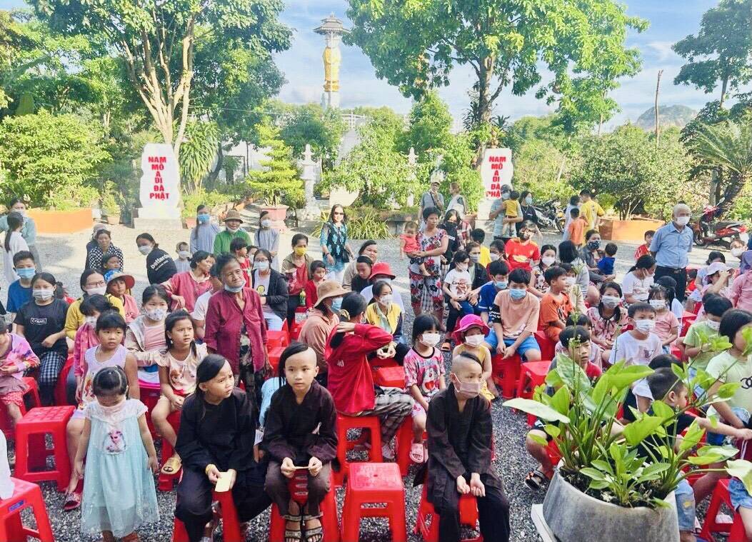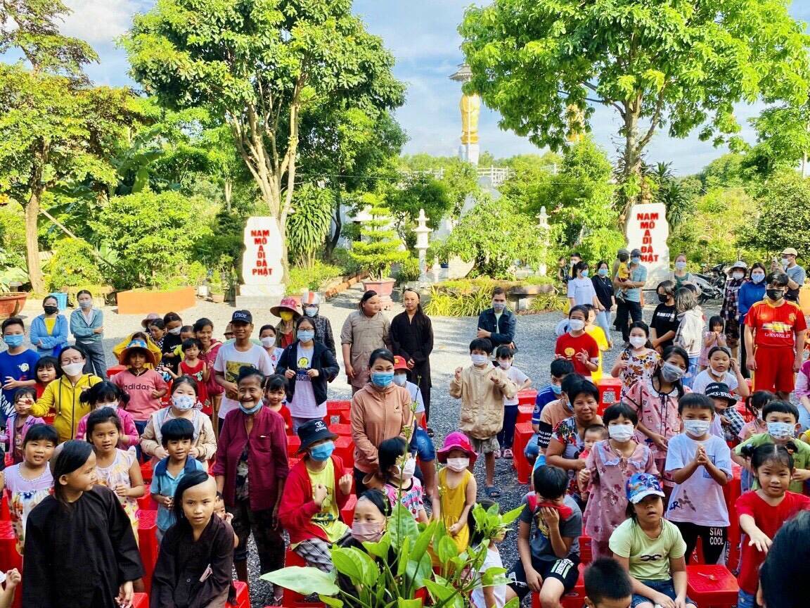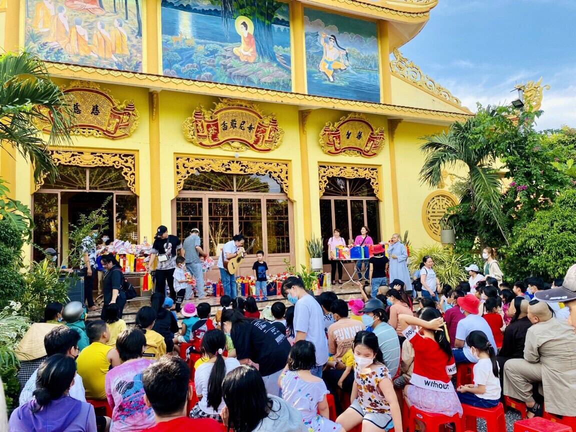 PGĐS – Với mong muốn tạo sân chơi lành mạnh cho các em thiếu nhi nhân dịp Tết Trung thu, chiều ngày 10/9/2022 (nhằm 14/8/Nhâm Dần), tại chùa Hương Nghiêm, làng Vạn Hạnh, thị xã Phú Mỹ – Ni sư Thích nữ Như Huệ – Ủy viên BTS thị xã Phú Mỹ, Trưởng Ban Từ thiện Phật giáo thị xã cùng các mạnh thường quân đã tổ chức Đêm hội Vầng trăng yêu thương cho hơn 200 em thiếu nhi, học sinh làng Vạn Hạnh.