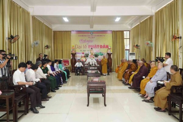 Cùng ngày, Ban Trị sự GHPGVN tỉnh đã đón tiếp đoàn Tòa Giám Mục Xuân Lộc đã đến thăm và chúc mừng lễ Phật đản.