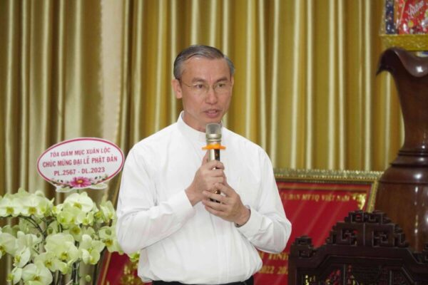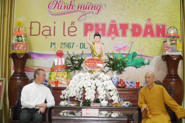 Tại buổi chúc mừng, LM. Đa minh Nguyễn Tuấn Anh đã phát biểu chúc mừng và thăm hỏi Chư tôn đức Ban Trị sự. Qua đó, Linh mục đã phát biểu rằng: trong suốt thời gian qua đã theo dõi những Phật sự của Ban Trị sự các cấp hỗ trợ cho bà con nhân dân rất lớn mạnh, đó là những việc làm hết sức ý nghĩa và thiết thực để hướng về ngày Phật đản sanh. Đồng thời Linh mục cũng mong muốn trong thời gian tới sẽ cố gắng đoàn kết nhiều Tôn Giáo hơn nữa để hỗ trợ tốt cho mọi người vượt qua những biến động về kinh tế đã chịu ảnh hưởng chung trên toàn thế giới.