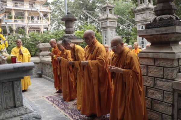 Đoàn thứ ba do TT. Thích Đạo Huy làm trưởng đoàn đã đến dâng hương và đảnh lễ bảo tháp HT. Thích Diệu Tâm – tại Chùa Phi Lai, bảo tháp HT. Thích Quang Đạo – tại Tổ đình Phước Viên.