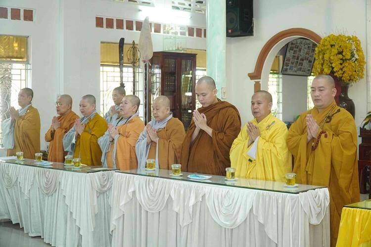 Đoàn lãnh đạo Ban Trị sự GHPGVN dưới sự Chứng minh của HT. Thích Thiện Đạo – Thành viên HĐCM GHPGVN, Chứng minh Ban Trị sự GHPGVN tỉnh Đồng Nai làm trưởng đoàn; TT. Thích Huệ Khai – Ủy viên Thường trực HĐTS, Trưởng Ban Trị sự, Trưởng ban Tăng Sự GHPGVN tỉnh Đồng Nai phó đoàn, đi cùng đoàn có HT. Thích Tâm Minh – Phó Ban Trị sự GHPGVN tỉnh; TT. Thích Huệ Sanh – Ủy viên HĐTS, Phó Ban Trị sự, Trưởng ban Hoằng Pháp GHPGVN tỉnh; TT. Thích Đạo Huy – Phó Ban kiêm Chánh Thư ký Ban Trị sự GHPGVN tỉnh; TT. Thích Minh Trì – Phó Ban Trị sự tỉnh; Trưởng Ban Trị sự GHPGVN huyện Trảng Bom; TT. Thích Thiện Pháp – Phó Ban Trị sự tỉnh, Trưởng ban Trị sự GHPGVN huyện Nhơn Trạch; TT. Thích Huệ Nghiệp – Phó Ban Trị sự, Trưởng Ban Pháp chế GHPGVN tỉnh; Đ Đ. Thích Đạt ma Quang Tuệ – Ủy viên HĐTS, Phó Ban Trị sự, Trưởng ban Giáo dục Phật giáo tỉnh; TT. Thích Quảng Trí – Phó Ban Trị sự, Trưởng ban Nghi lễ GHPGVN tỉnh; NS. TN Diệu Trí – Ủy viên Dự khuyết HĐTS, Phó Ban Trị sự, Trưởng ban Kinh tế Tài chánh GHPGVN tỉnh; TT. Thích Quảng Ảnh – Ủy viên Thường trực Ban Trị sự tỉnh; ĐĐ. Thích Chơn Nghĩa – Ủy viên Thường trực Ban Trị sự, Trưởng ban Từ thiện xã hội GHPGVN tỉnh; ĐĐ. Thích Phước Chơn – Ủy viên Thường trực Ban Trị sự, Phó Văn phòng Ban Trị sự GHPGVN tỉnh; NT. TN Xuân Liên – Ủy viên Thủ quỹ Ban Trị sự GHPGVN tỉnh; NS. TN Huệ Hiếu – Ủy viên Thường trực Ban Trị sự, Phó trưởng Phân ban Ni giới GHPGVN tỉnh; ĐĐ. Thích Đạt ma Toàn Hạnh – Ủy viên Thường trực Ban Trị sự tỉnh; ĐĐ. Thích Huệ Thới – Ủy viên Ban Trị sự; Cùng toàn thể Chư tôn đức Tăng Ni thường trực Ban Trị sự, quý thiện nam tín nữ Phật tử phát tâm hộ trì tam bảo tháp tùng cùng đoàn.