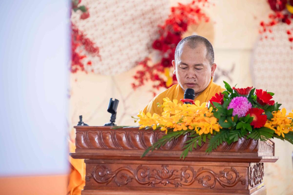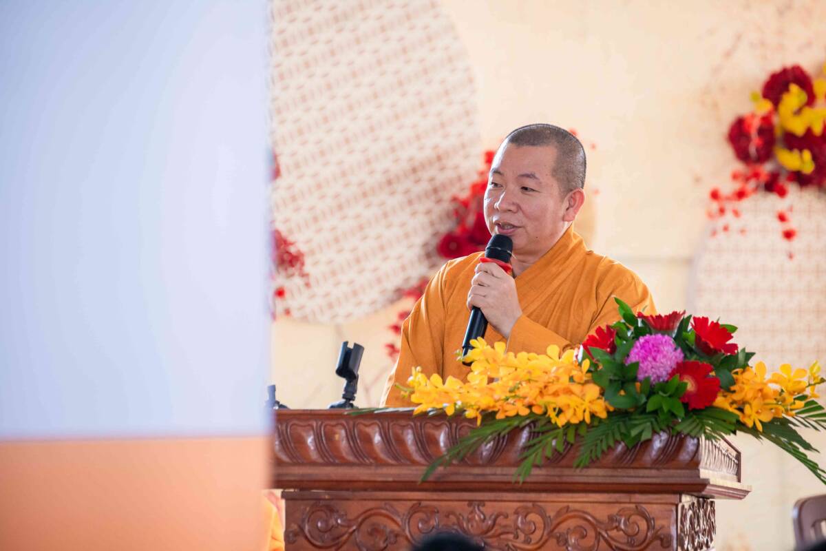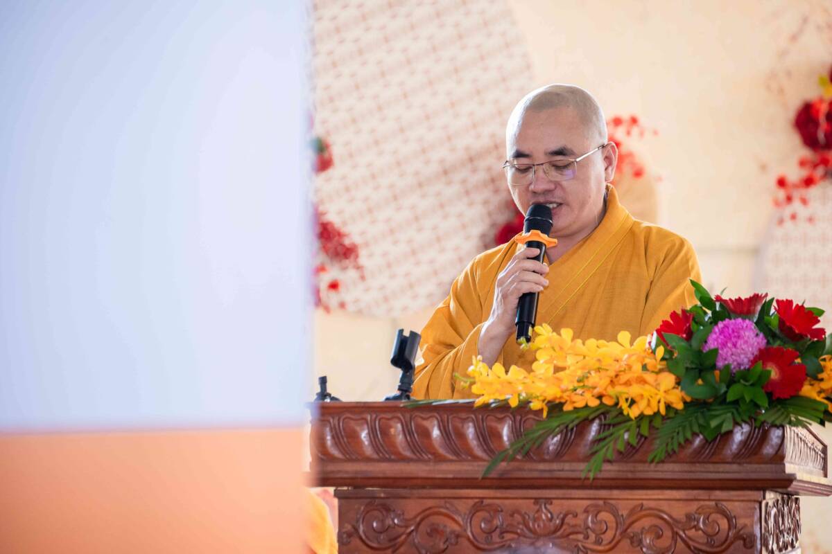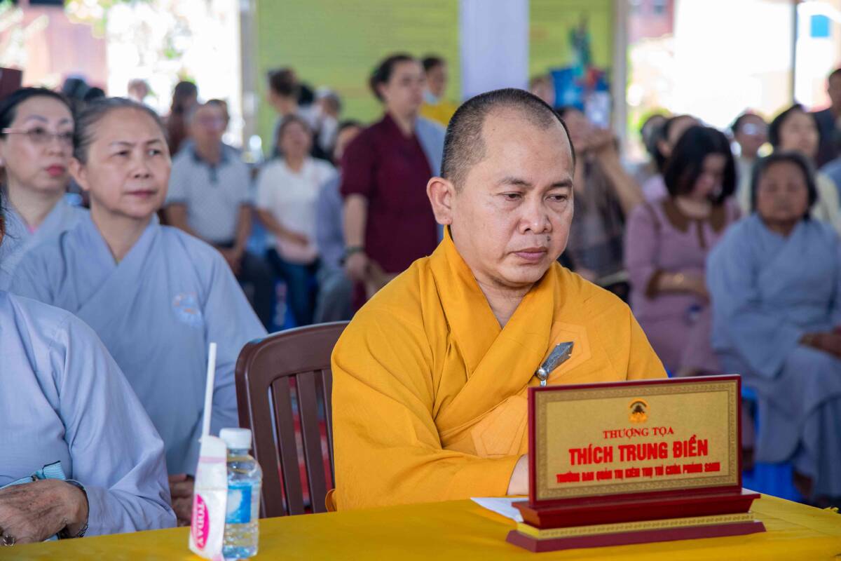 Tại buổi lễ, ĐĐ. Thích Thiện Trí – Chánh Thư ký BTS GHPGVN tỉnh Đồng Nai thay mặt Thường trực BTS GHPGVN tỉnh Đồng Nai thông báo Giáo chỉ Tấn phong giáo phẩm của HĐCM Trung ương GHPGVN đối với chư Tôn đức tại tỉnh Đồng Nai, trong đó có TT. Thích Trung Điền.