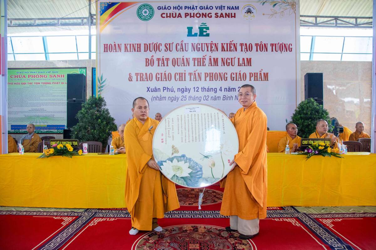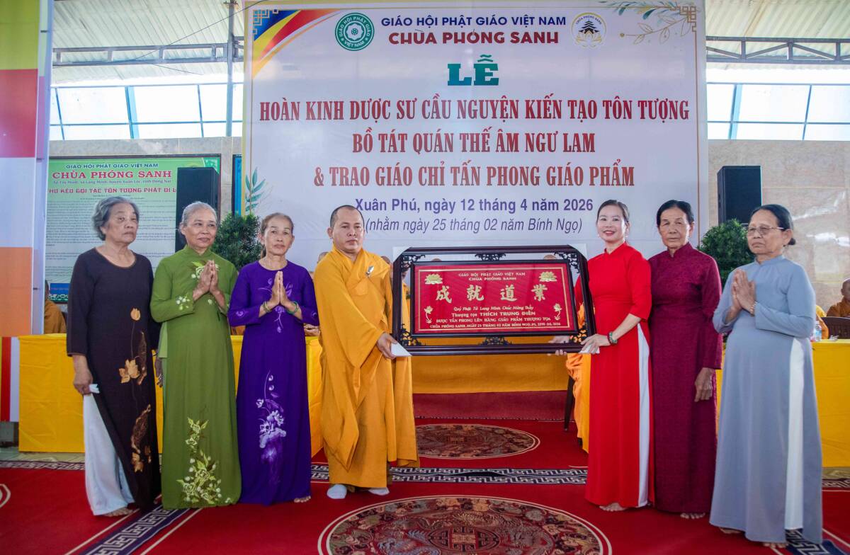 PGDS – Sáng ngày 12/4/2026 (nhằm ngày 25/02/Bính Ngọ) tại chùa Phóng Sanh, xã Xuân Phú trang nghiêm tổ chức hoàn kinh Dược Sư, cầu nguyện kiến tạo tôn tượng Bồ-tát Quan Âm Ngư Lam và đón nhận giáo chỉ Tấn phong.