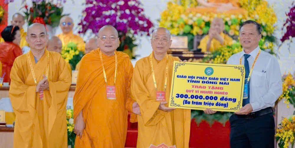Nhằm phát huy truyền thống từ bi, nhập thế và khẳng định tinh thần Phật giáo đồng hành cùng dân tộc, Ban Trị sự đã trao 300 triệu đồng ủng hộ Quỹ “Vì người nghèo” đến đại diện Ủy ban MTTQVN tỉnh Đồng Nai.