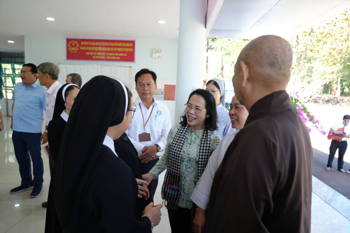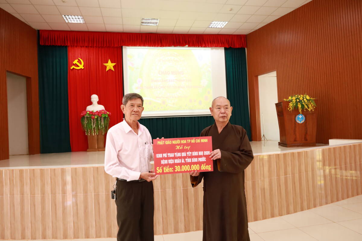 Đoàn do Bà Trần Kim Yến, nguyên Ủy viên Ban Thường vụ Thành uỷ, nguyên Chủ nhiệm uỷ ban kiểm tra thành uỷ TP. HCM làm trưởng đoàn cùng đoàn có Ông Thạch Nghi Xuân, Trưởng Ban Dân tộc và Tôn giáo Ủy ban MTTQ Việt Nam TP HCM; HT.Thích Huệ Công UVHĐTS, Phó Ban Trị sự GHPGVN TPHCM kiêm Trưởng Ban Đại Diện Phật giáo người hoa TP, cùng chư tôn đức tháp tùng.