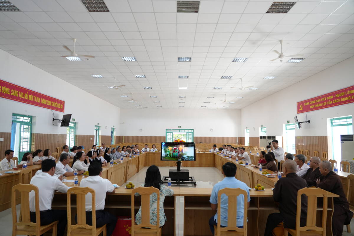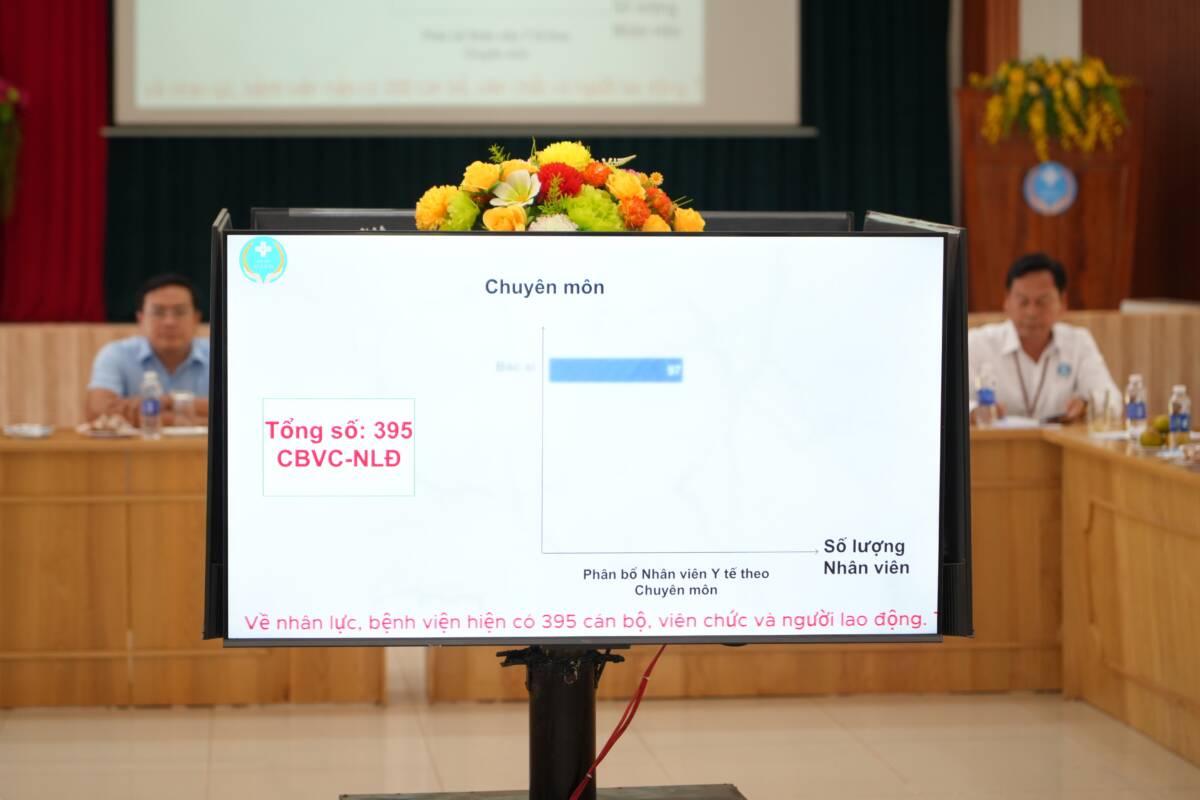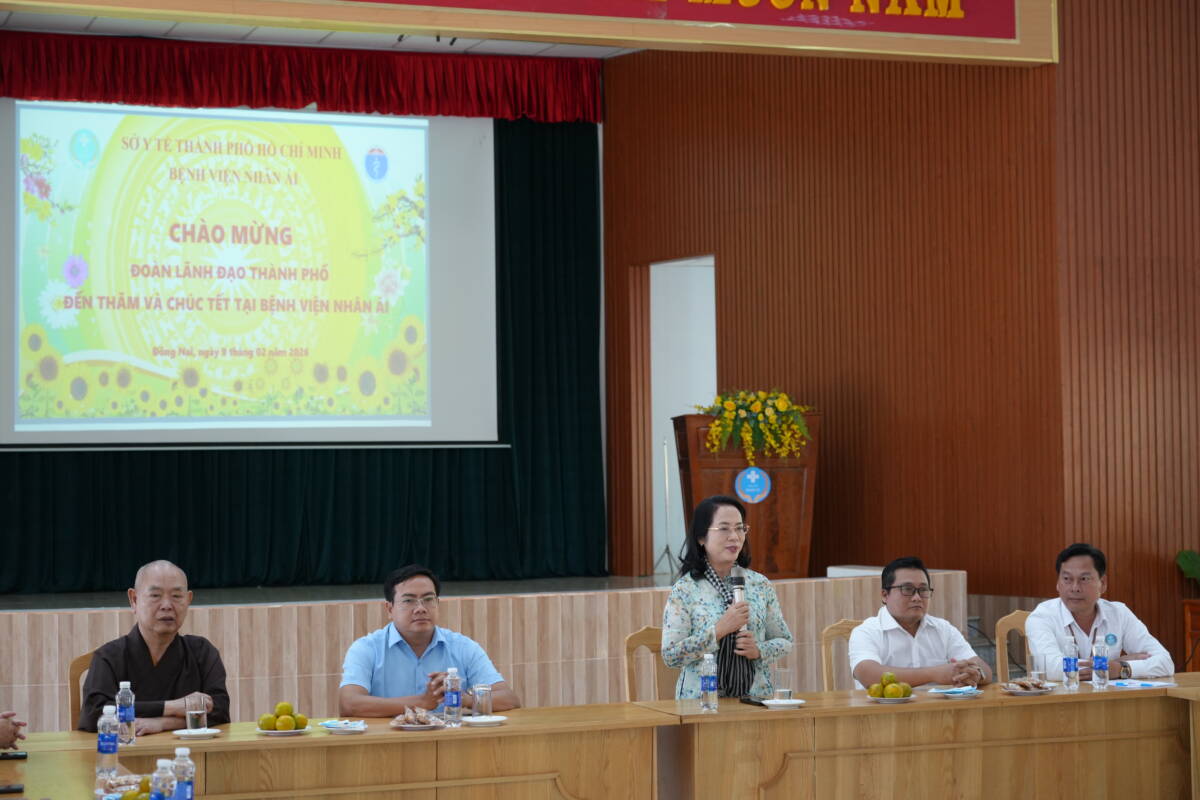 Mở đầu cuộc gặp mặt, giới thiệu đại biểu, Đoàn được nghe báo cáo hoạt động năm 2025 qua video tổng kết của Bệnh viện. theo đó Bệnh viện Nhân Ái Là bệnh viện chuyên khoa hạng 2, có chức năng điều trị chăm sóc cho bệnh nhân HIV/AIDS, lao, lao kháng thuốc, tâm thần và các bệnh lý khác. Hiện Bệnh viện có 22 phòng, khoa, tổ, đơn vị. Số giường bệnh được giao là 450 giường. Bệnh viện hiện có 395 cán bộ, viên chức, người lao động, trong đó có 97 Bác sĩ, 16 Dược sĩ, 177 điều dưỡng, 13 kỹ thuật viên xét nghiệm và 92 cán bộ nhân viên trình độ chuyên môn khác..Trong năm bệnh viện cử 2 bác sĩ tham gia luân phiên trong 3 tháng, từ tháng 10 năm 2025 đến tháng 1 năm 2026 đến hỗ trợ công tác khám chữa bệnh ban đầu cho người dân xã Thạnh An, Thành phố Hồ Chí Minh. Năm 2025 Sở y tế thẩm định phê duyệt 44 danh mục chuyên môn kỹ thuật mới cho bệnh viện, nâng tổng số danh mục chuyên môn kỹ thuật lên 535 danh mục. Đồng thời bệnh viện được đánh giá công tác chất lượng bệnh bệnh viện năm 2024 đạt 4.01 điểm.