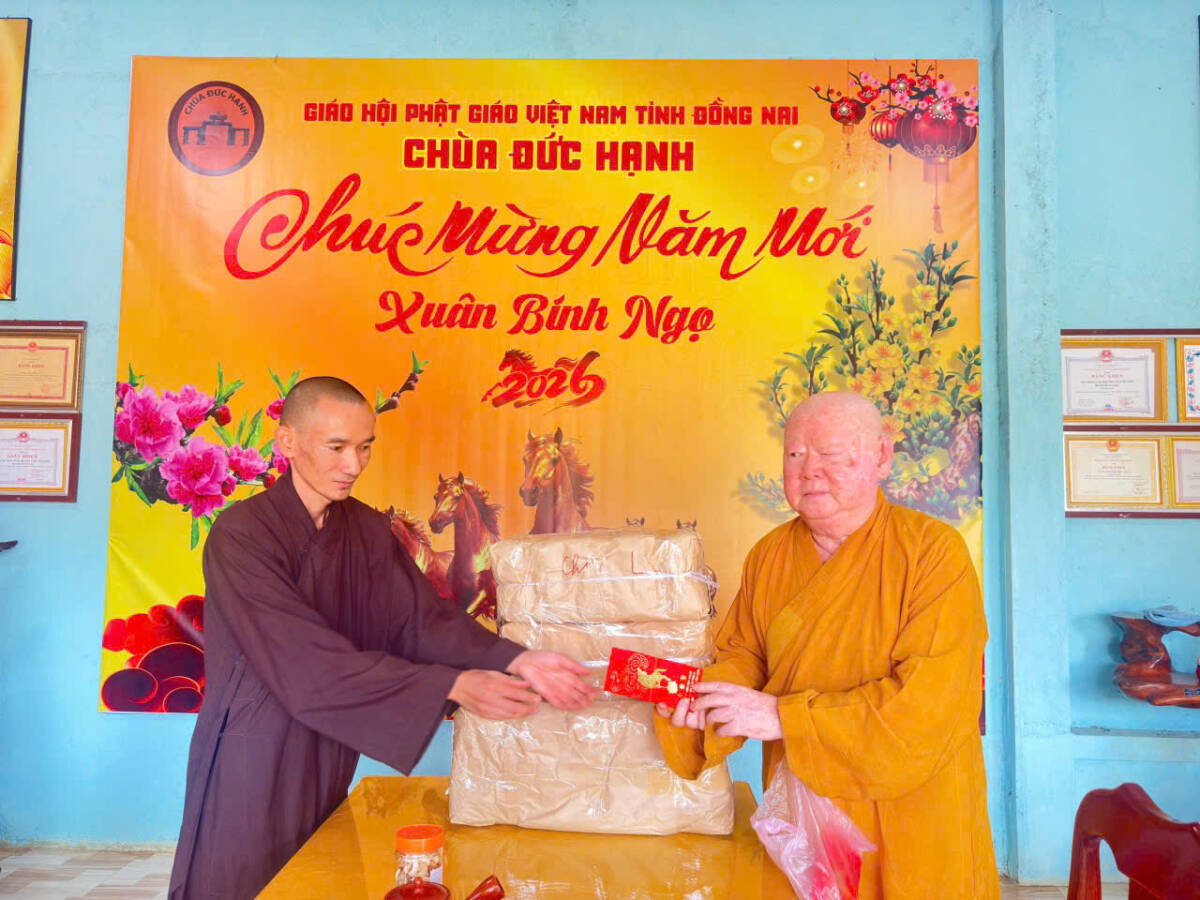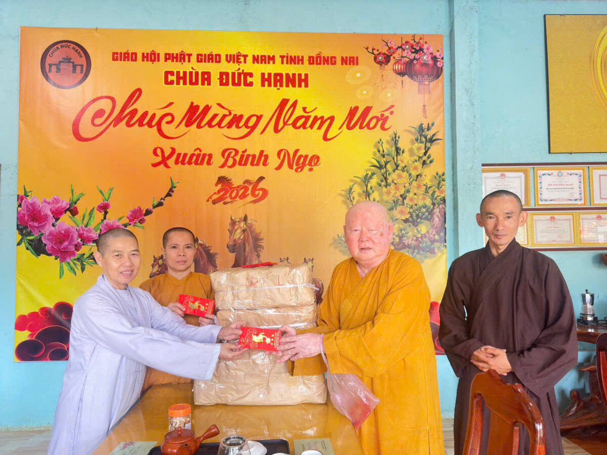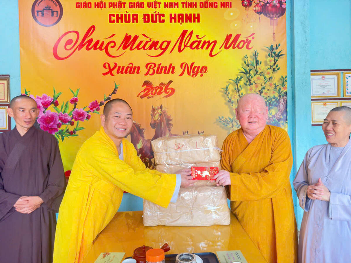 PGĐS- Trong niềm hoan hỷ đón Xuân Di Lặc, sáng nay, ngày 23/2/2026 (mùng 7 tháng 1 năm Bính Ngọ), tại chùa Đức Hạnh (thôn Phước Sơn, xã Phú Nghĩa, Đồng Nai), HT.Thích Duy Trấn, Phó ban HDPT T.Ư, trụ trì chùa Liên Hoa (phường Bình Thới, TP.HCM) đã về thăm chư Tôn đức Tăng Ni trụ trì các tự viện thuộc 4 xã Phú Nghĩa, Đa Kia, Đăk Ơ và Bù Gia Mập.