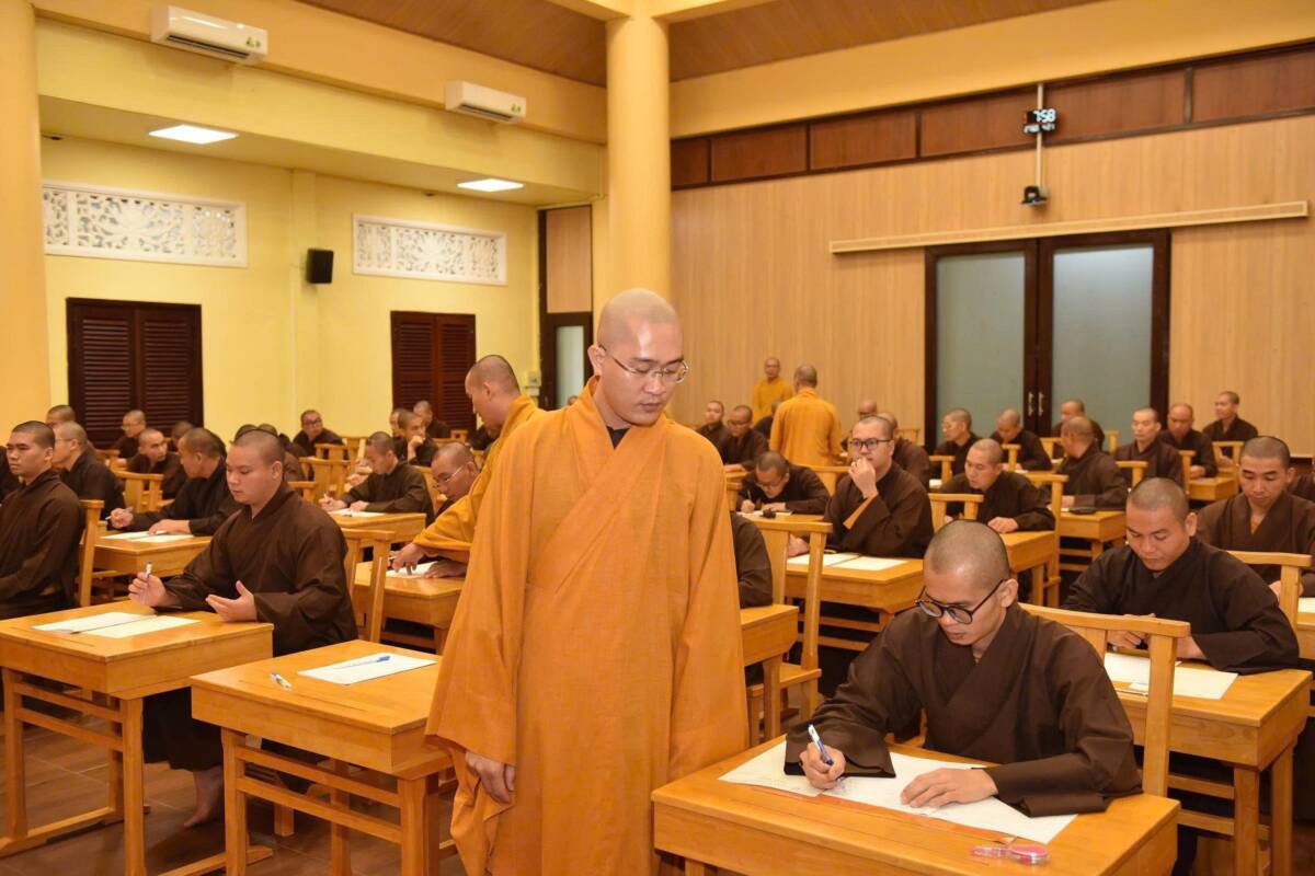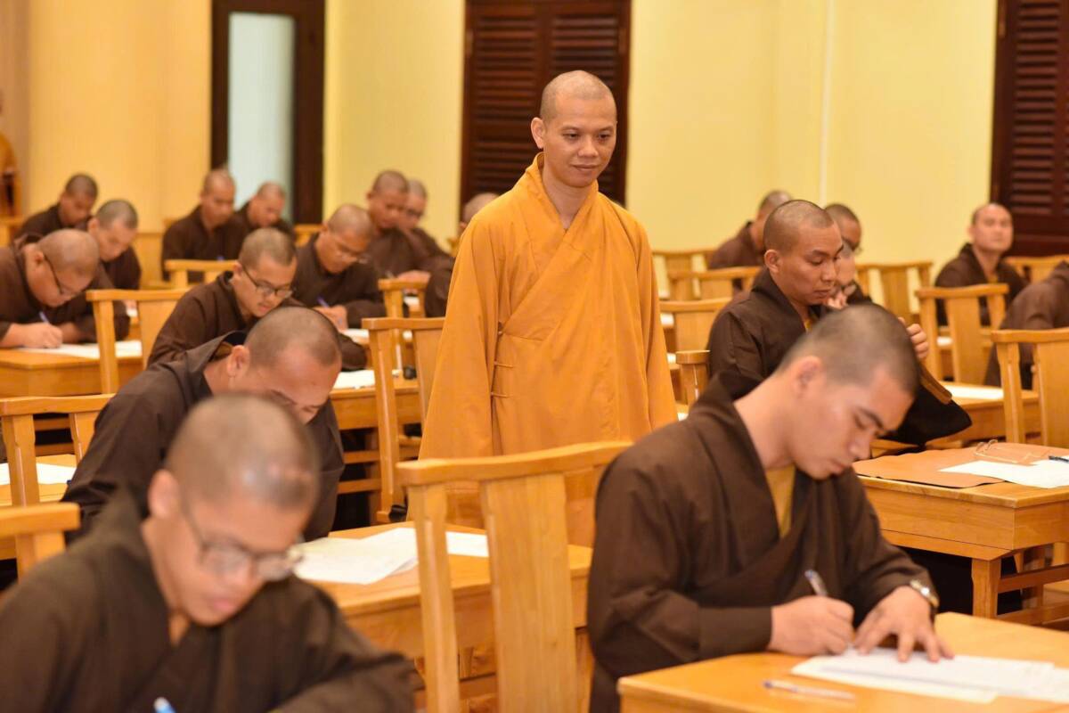 Trong giờ phút thiêng liêng trước khi hồi trống thi vang lên, HT. Thích Huệ Khai đã dành những huấn từ đầy tâm huyết cho các thí sinh. Hòa thượng nhấn mạnh rằng, kiến thức không chỉ nằm trên trang giấy mà còn nằm ở đức hạnh và sự tự giác của người xuất gia. Lời dặn dò “nghiêm túc và tôn trọng quy chế” chính là bài học đầu tiên về giới luật trong thi cử, giúp Tăng sinh hiểu rằng mỗi nét bút hôm nay đều là một viên gạch xây nên tòa tháp trí tuệ mai sau.