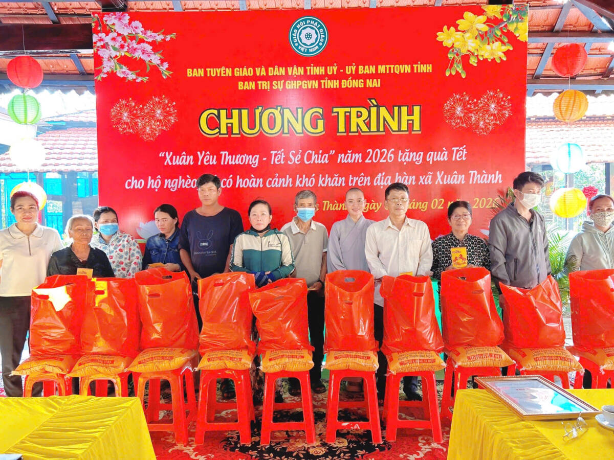 Lan tỏa tinh thần “Phục vụ chúng sinh là cúng dường chư Phật” và thực hiện truyền thống tương “thân tương ái” của dân tộc Việt Nam, chương trình “Xuân yêu thương – Tết sẻ chia năm 2026” được tổ chức nhằm mang đến sự ấm áp, động viên kịp thời cho các hộ nghèo, hộ có hoàn cảnh khó khăn trước thềm năm mới.