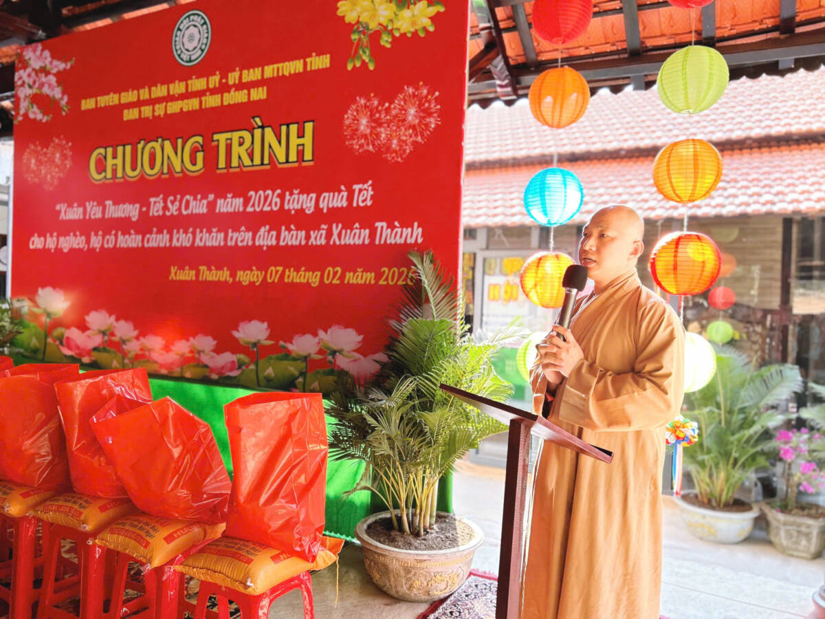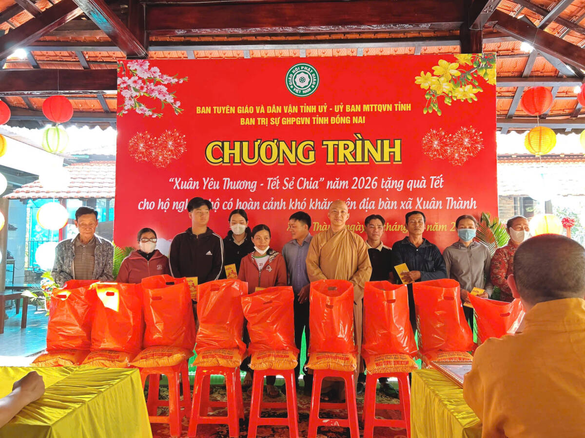 PGĐS – Chiều ngày 07/02/2026 (nhằm ngày 20 tháng Chạp năm Ất Tỵ), tại Chùa Thanh Lương (Ấp Phượng Vỹ, xã Xuân Thành), Ban Trị sự GHPGVN tỉnh Đồng Nai đã phối hợp cùng các cơ quan ban ngành xã Xuân Thành tổ chức chương trình trao quà Tết cho hộ nghèo, hộ có hoàn cảnh khó khăn tại địa phương. Đây là hoạt động ý nghĩa chào mừng Đại hội Đại biểu Phật giáo tỉnh và đón chào xuân mới Bính Ngọ 2026.