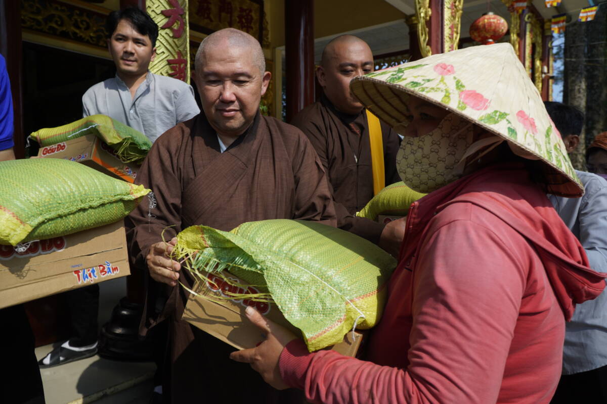 Thượng tọa cũng gửi lời cảm ơn đến Hội Liên hiệp Phụ nữ phường đã kết nối và hỗ trợ để buổi trao quà diễn ra thuận lợi, đúng đối tượng.