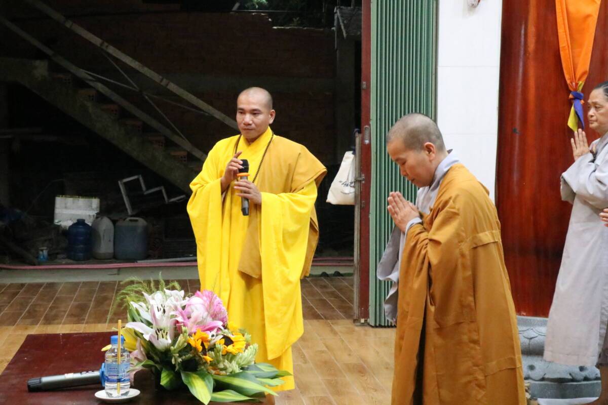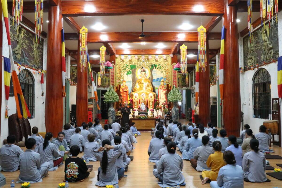 PGĐS – Tối ngày 19/06/Quý Mão, tại chùa Thiền An (thị trấn Mỹ An, huyện Tháp Mười, tỉnh Đồng Tháp), đã trang nghiêm cử hành Lễ vía đức Quán Thế Âm thành đạo. Nhân dịp này Đại đức Thích Đức Hiếu, trụ trì chùa Thiền An đã cung thỉnh Ni sư Thích nữ Như Lan, trụ trì chùa Hưng Thiền chia sẻ thời pháp thoại đến với hơn 100 Phật tử với chủ đề “Hạnh nguyện Quán Thế Âm”, để giúp quý Phật tử ôn lại những hạnh nguyện thù thắng của đức Quán Thế Âm và cùng nhau noi theo hạnh nguyện từ bi của Ngài.