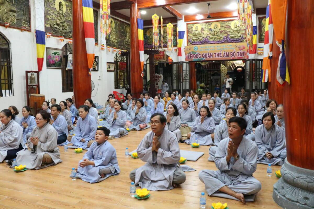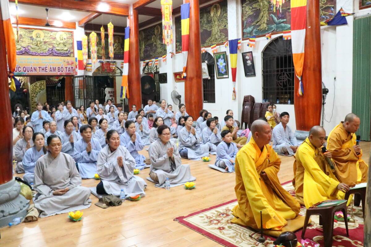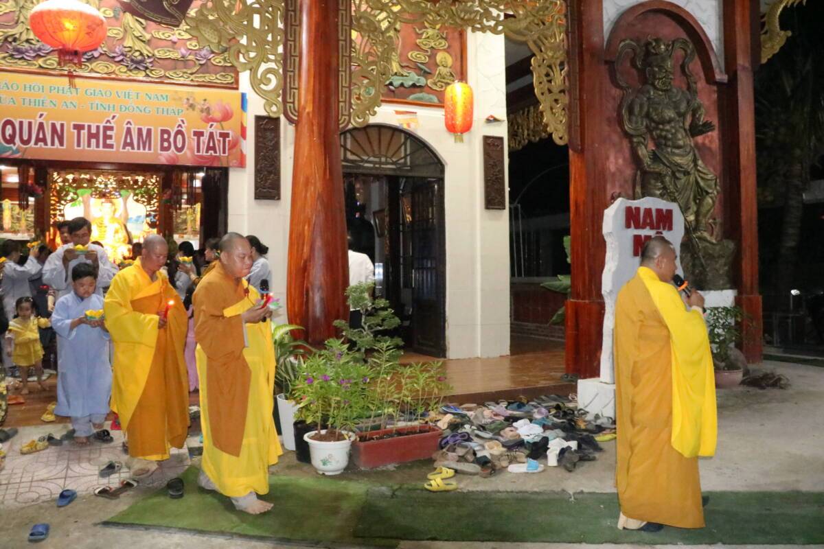 Sau thời pháp thoại của Ni sư Thích nữ Như Lan, được sự hướng dẫn của Đại đức trụ trì Thích Đức Hiếu, Phật tử đạo tràng đã trang nghiêm cử hành lễ vía đức Quán Thế Âm thành đạo, toàn thể chúng hội đạo tràng đã thắp lên những ngọn đèn từ bi trí tuệ cùng nhau bước đi những bước chân an lạc với ý nghĩa đem ánh sáng từ bi trí tuệ của đức Quán Âm soi rọi đến những nơi tối tăm đau khổ ngõ hầu xua tan những nỗi khổ niềm đau cho tất cả chúng sanh.